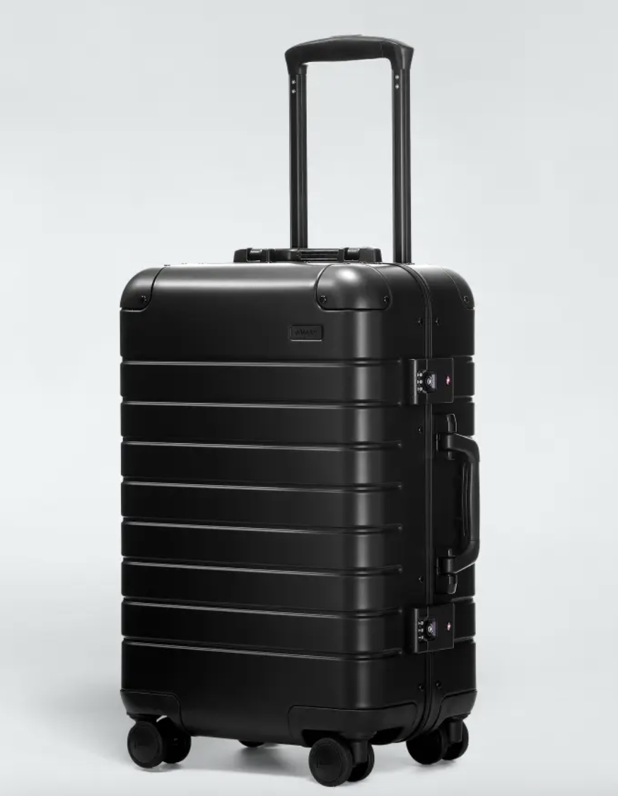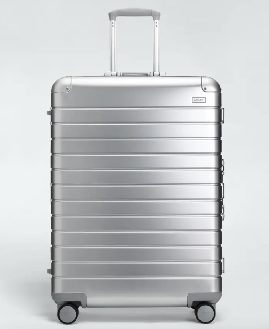 AWAY 品牌最大號的鋁製大型托運行李箱,它有引人注目的鋁製外殼堅固耐用,足以應對旅程中的各種磨損,其360°旋轉輪子讓我們能夠在機場、車站和街道上輕鬆靈活地穿梭移動。