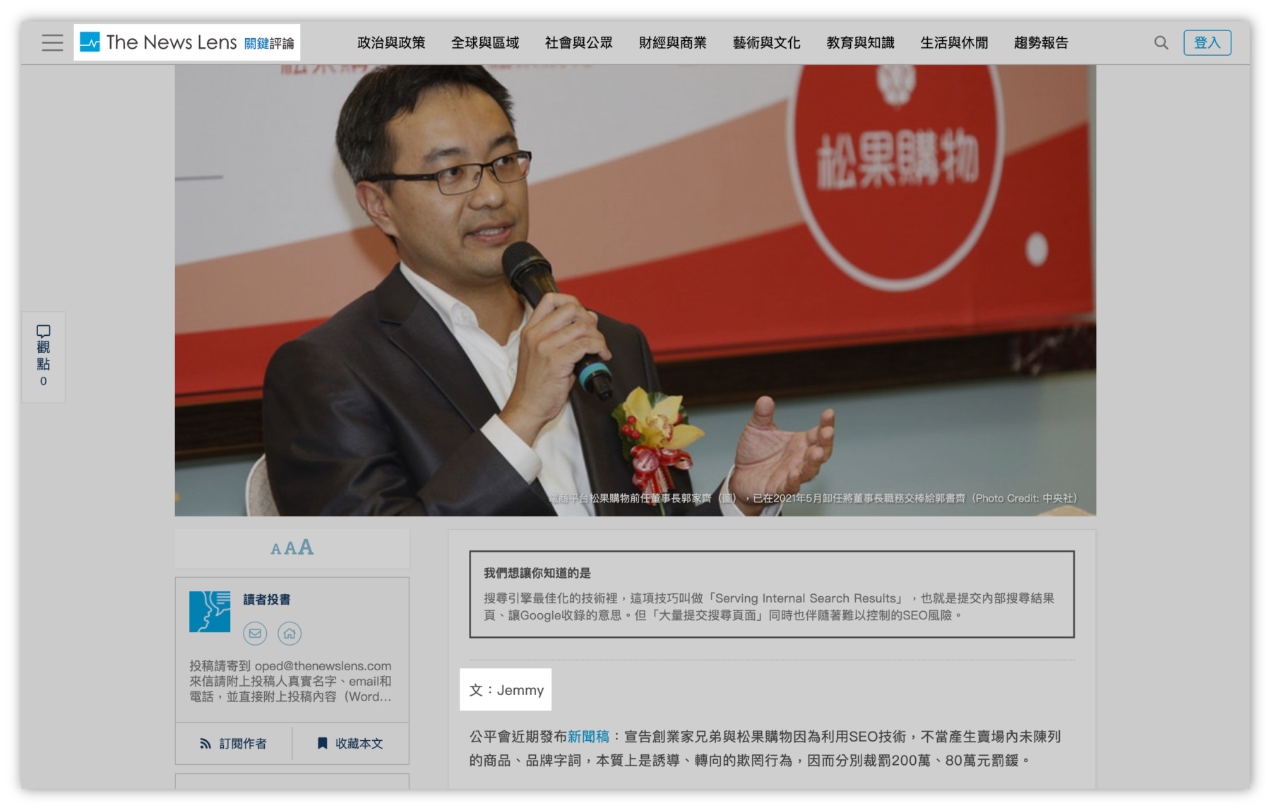 非常可能就是 Jemmy 經常在〈行銷人〉、〈電腦王阿達〉、〈蝦皮大學〉...... 等著名的網站不定期投稿優質的文章,並且從這些高權重網站獲得了不少反向連結的緣故。