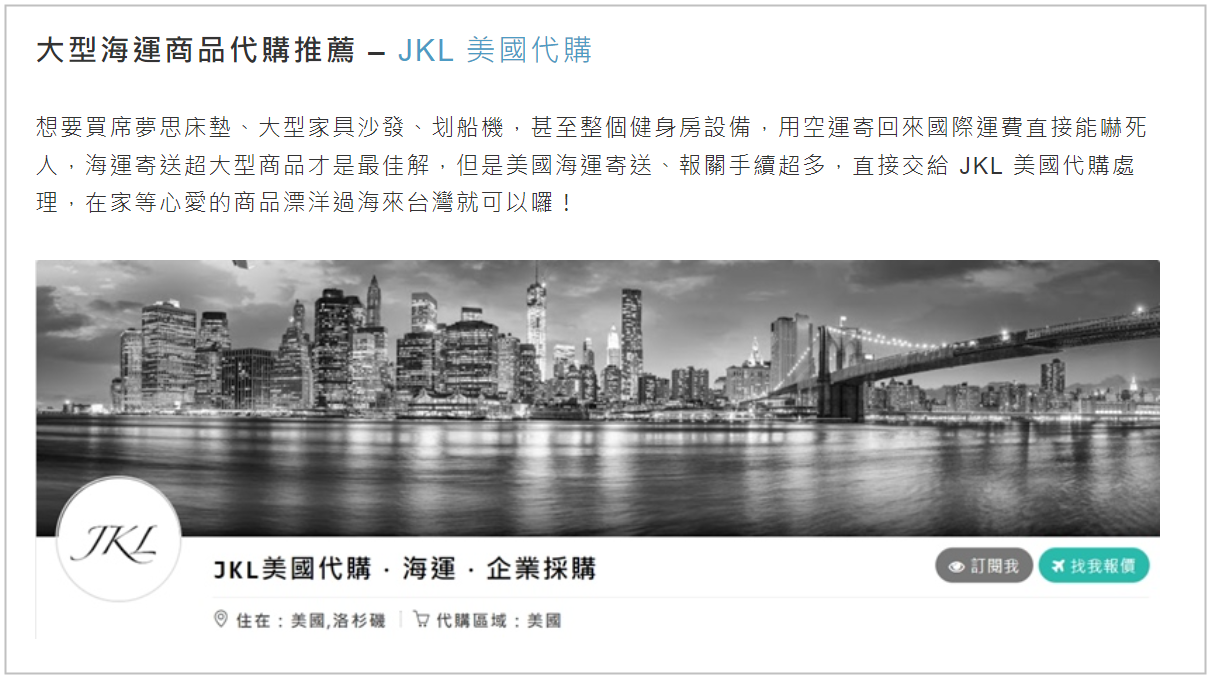 且 JKL 在各大代購網站、論壇上都查詢得到消費者的好評推薦,豐富的代購經驗值得您的信任。