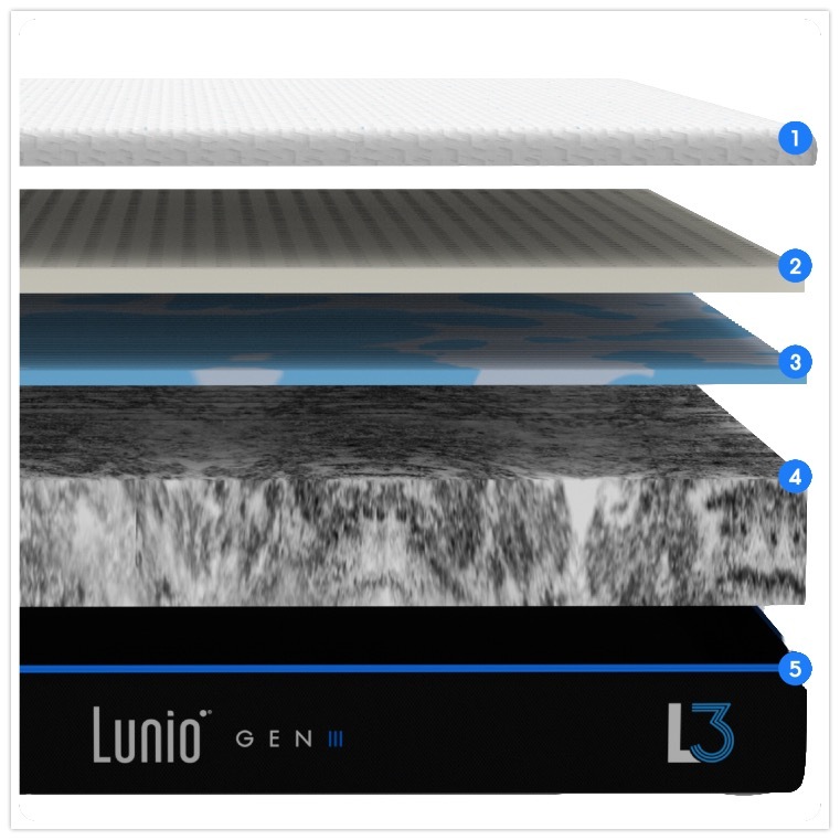 Lunio 床墊具有創新的五段式設計,使床墊更貼合人體曲線。