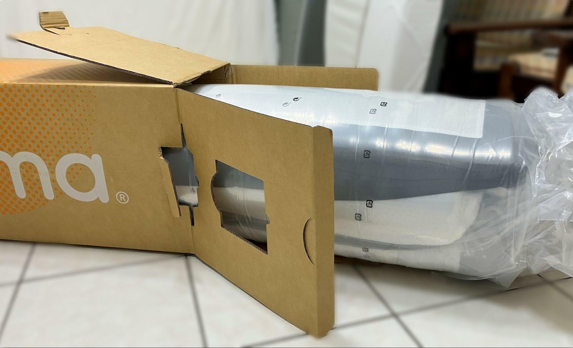 Emma 床墊整體購物體驗相當好,從圖片可以看到床墊寄來的時候包裝完整,且體積非常小,壓縮之後的高度僅 110 公分,單人也可以輕易搬運床墊。