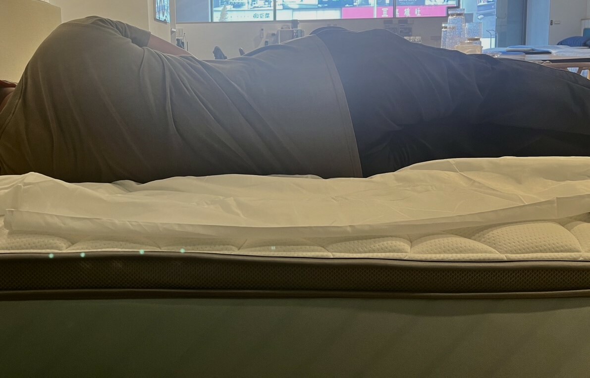試躺時,服務人員有介紹床墊有層舒適層是棉花、泡綿和纖維等多款墊料,可以提供頂級感受,而確實在側躺時,有感受到深度放鬆的感覺。