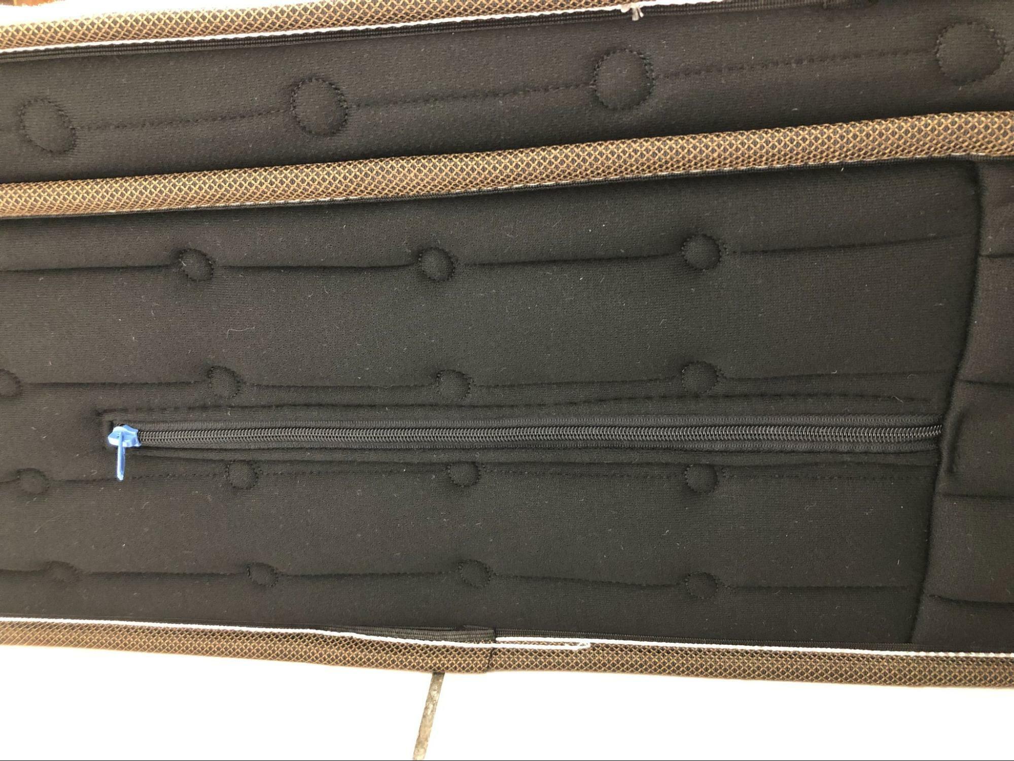此張床墊於床側設有檢視孔,能讓消費者一目瞭然床墊內的結構,經由檢視孔,能看到加固床沿的雙 M 型鐵架。