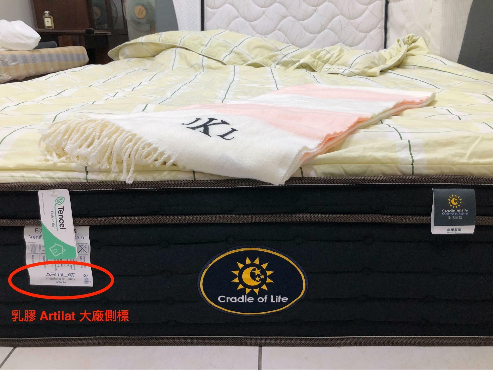 床墊所採用的材料大多出自知名大廠,有一定的品質保證。像是獨立筒鋼材是來自中鋼公司,床墊舒適層選用的是比利時品牌 Artilat 大廠的進口乳膠(床尾側邊有貼標),床墊整體用料相當不錯。