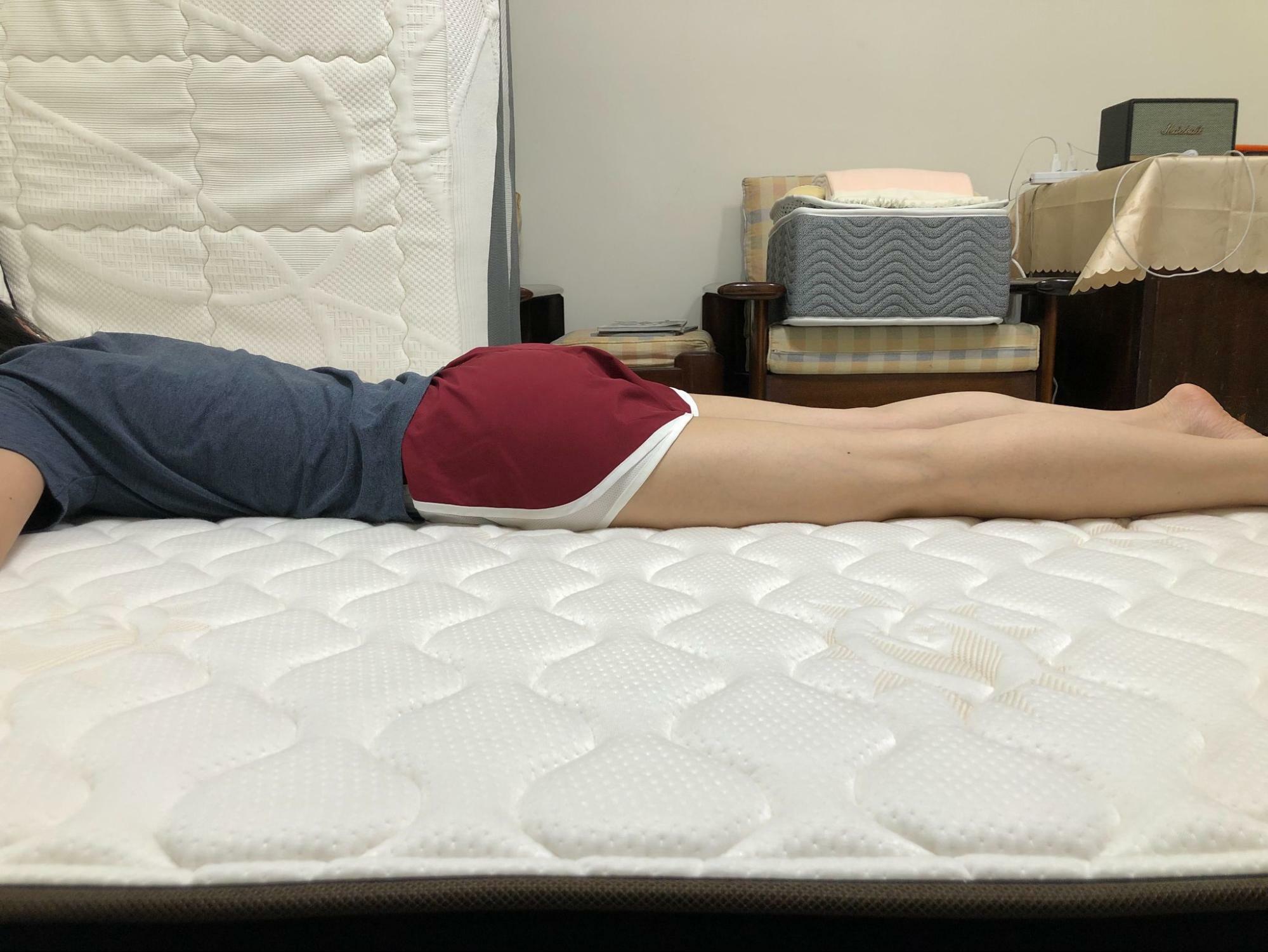 趴睡時,我能夠感受到床墊對腰部擁有足夠的支撐力,因此腹部的肌肉不需要額外出力,讓人可以放鬆地躺在床上。