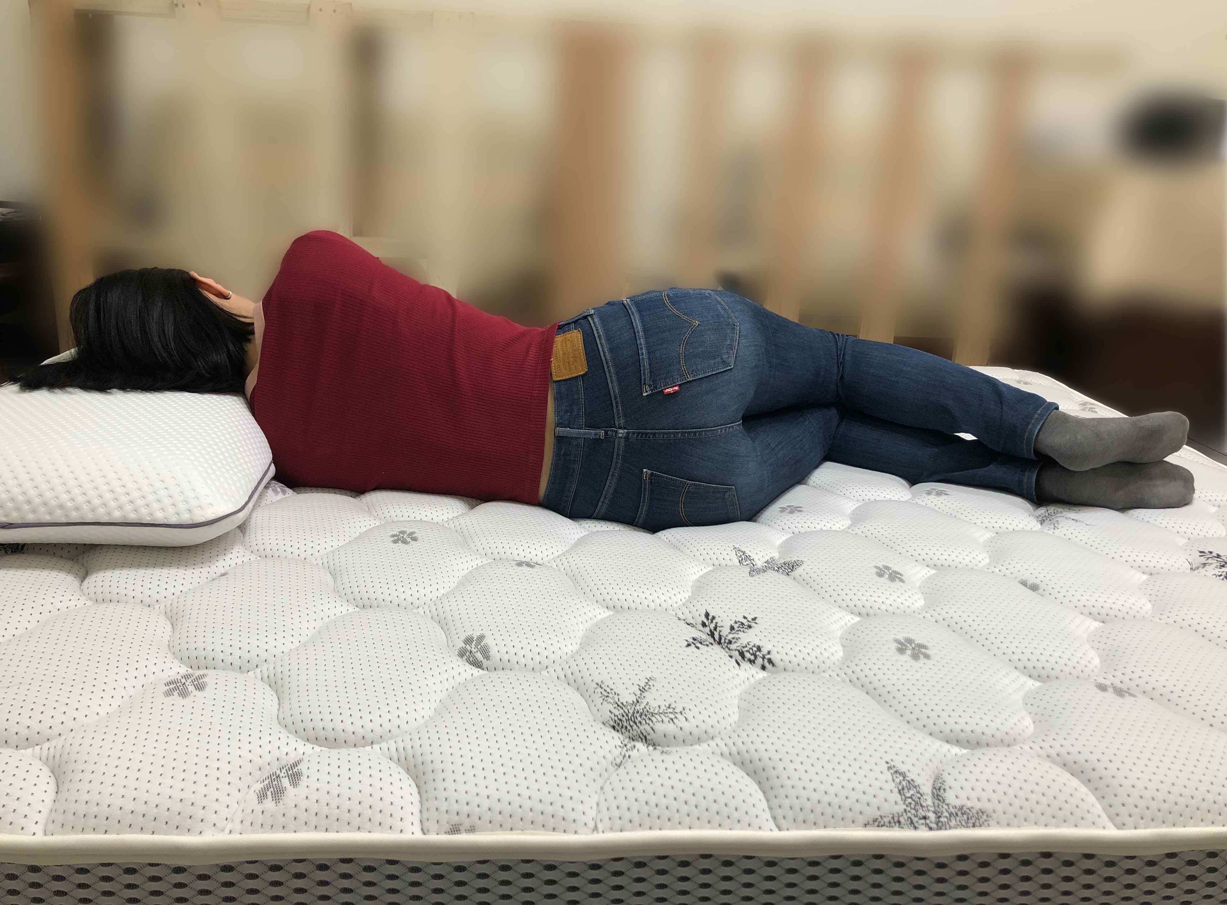 不過經 Gin 實測,雖然米蘭床墊反面偏硬,但仍能給予腰部足夠的支撐,且腹背處無需特別施力,就能輕鬆側躺在床上,不會倒下。
