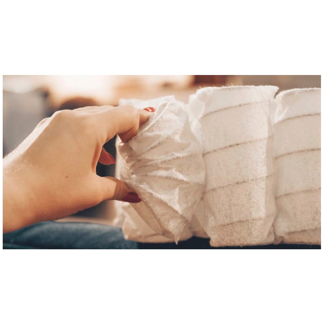 悅夢在間棉層當中採用日本三井防火棉,這種材質可以有效阻卻火焰延燒風險,也減少了阻燃劑使用。