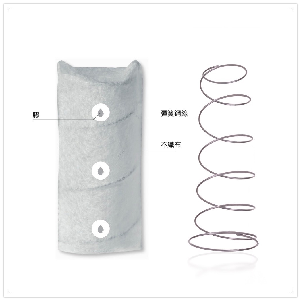 獨立筒指的是將一顆顆彈簧各別放入獨立的筒型不織布之中,再組合成為床墊,因而得名。
