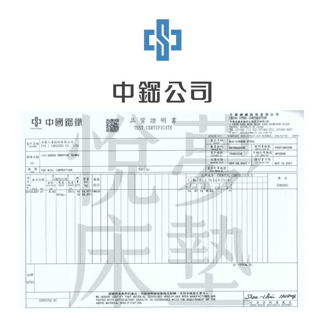 台灣產製彈簧 616~1008 顆數彈簧,或德國 AGRO 廠商原裝進口彈簧 提供中鋼公司鋼線歷史文件溯源查詢 |