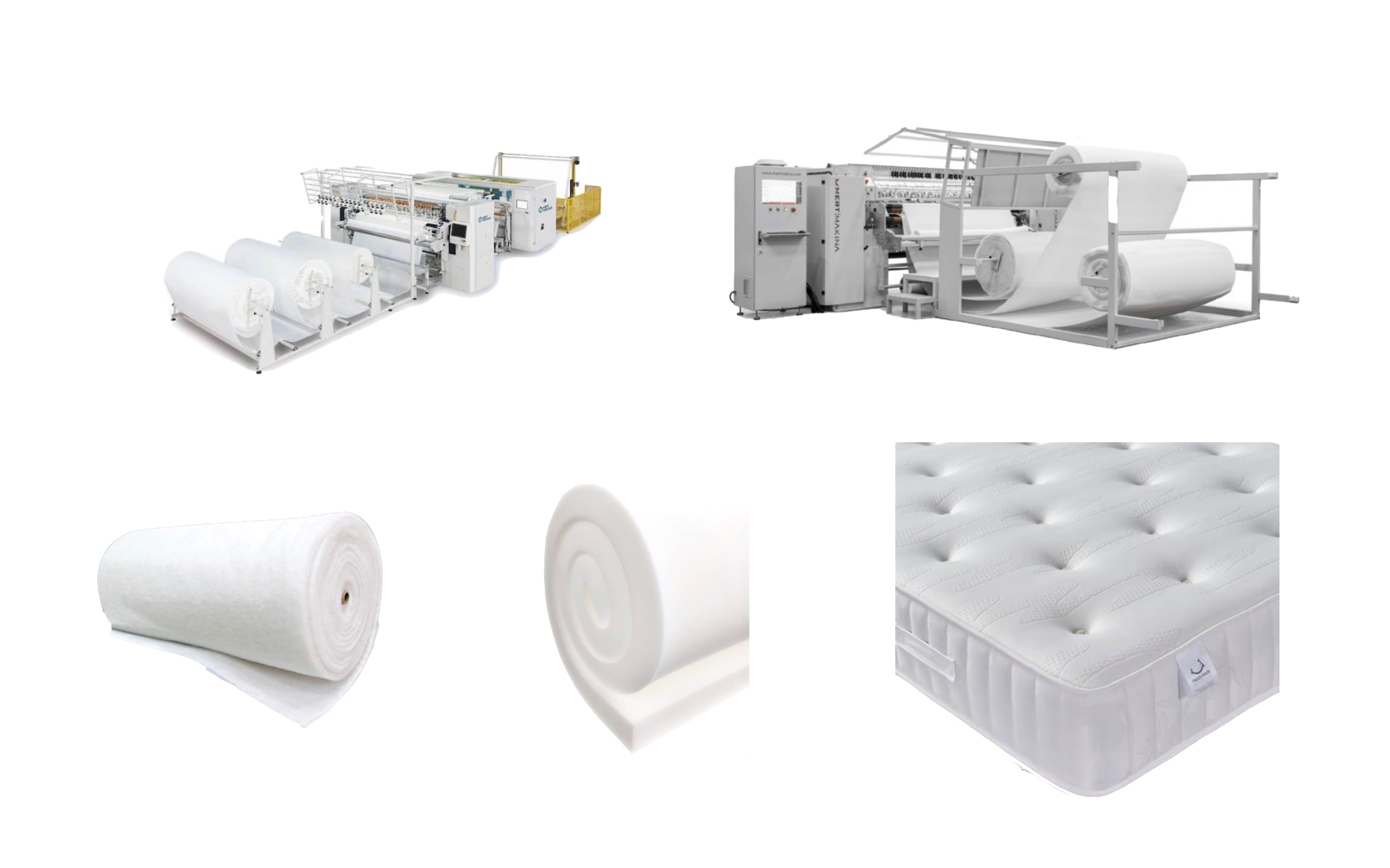 組成床墊「膨膨的外觀」,其實不只看得到的布料,還包含了泡棉、透氣絲棉、不織布等多重材質,與最外層的表布加工縫製在一起。
