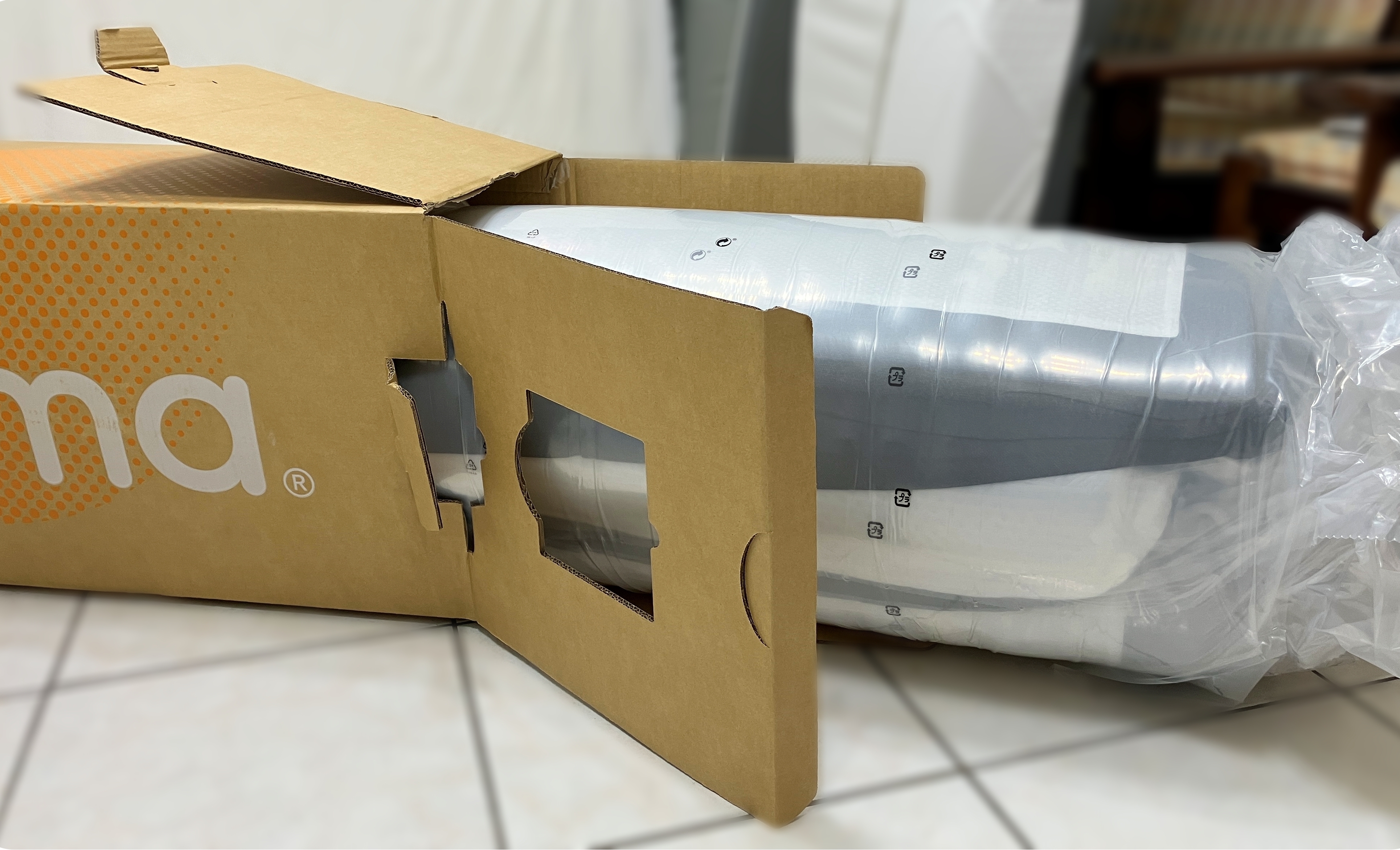 實際收到 Emma 床墊後,瞬間就能體會到捲包床的優勢,因為實在很難想像大大的床墊可以收在小小的紙箱。把箱子立起來,高度差不多 110 公分左右,兩側預留四指可伸進去的小洞,方便施力和搬運,重量在可接受的範圍內,一個人也能搬得動。