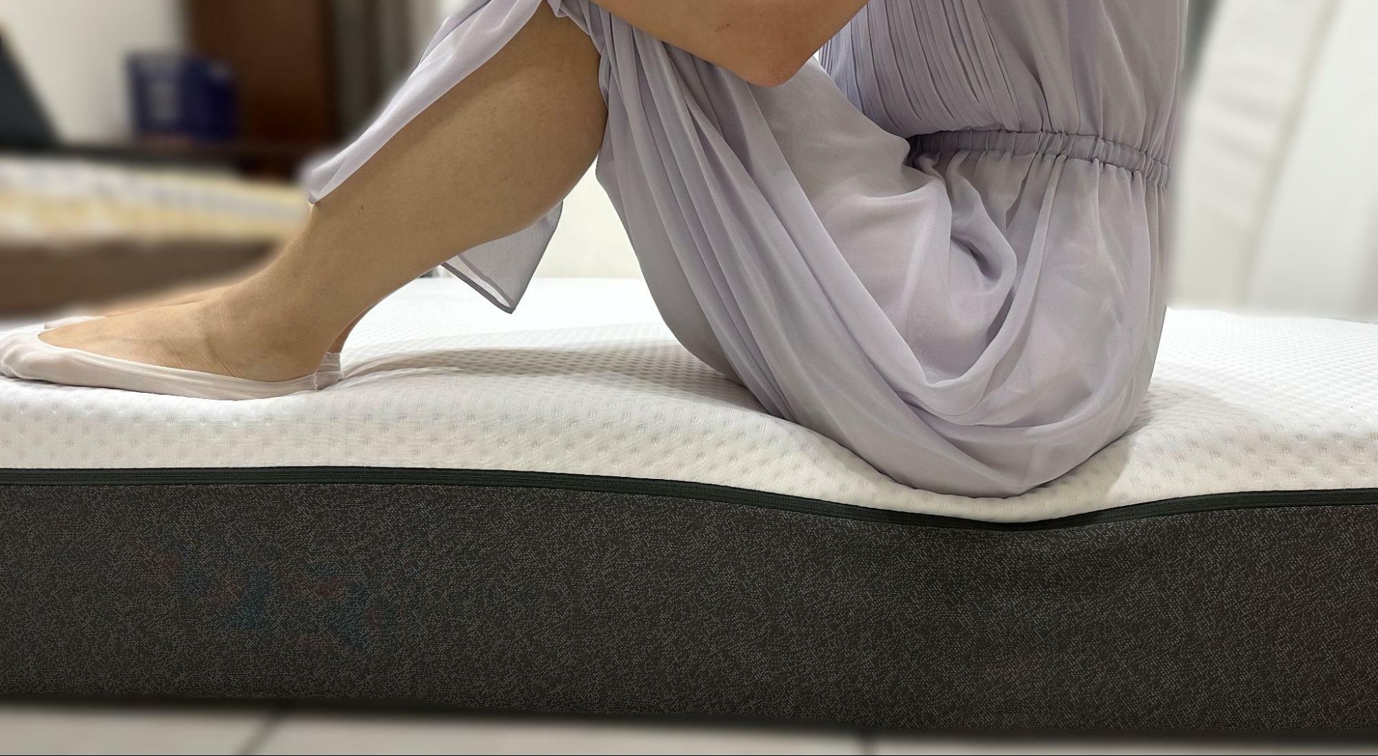 Emma Hybrid 床墊與眠豆腐 2.0 無邊框版相同,兩者相較於眠豆腐 2.0 的有邊框版,在床沿支撐性上較低,比較不適合習慣坐在床邊的使用者。