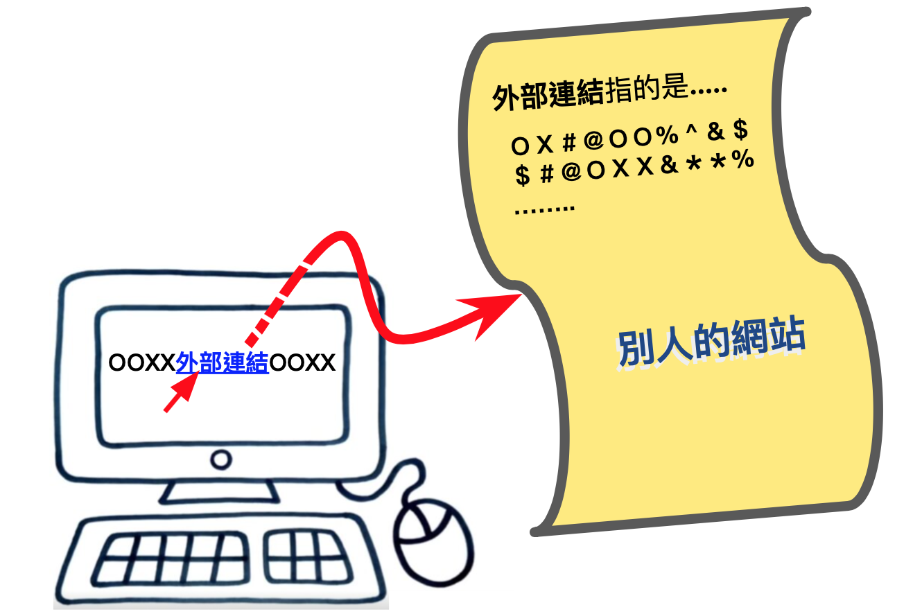連到自家網站的其他網頁超連結,就是內部連結;而連到其他網站的超連結,則是外部連結。