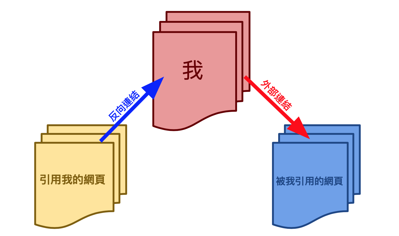 當我今天在自己的網頁建立一條捷徑連到他人網頁,此捷徑就是我的外部連結、同時也是對方得到的反向連結。