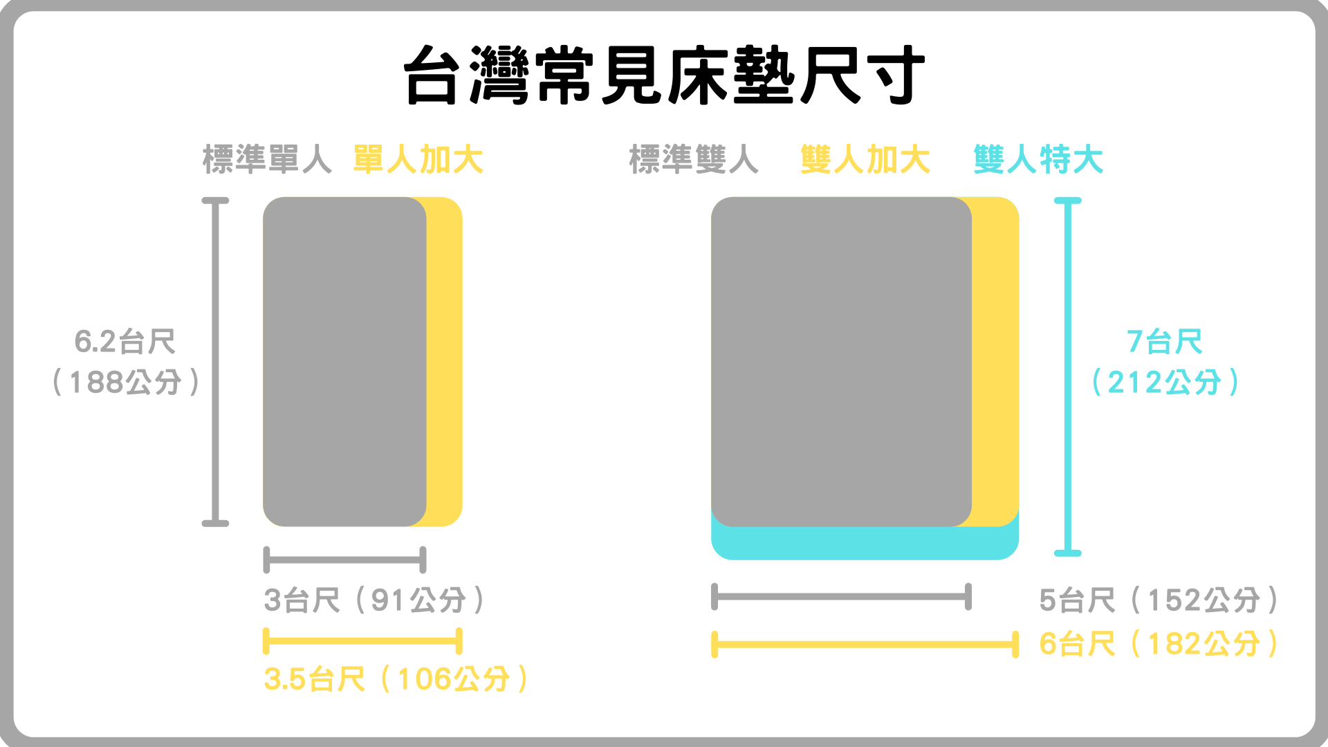 挑選出符合自身需求的床墊款式以後,也別忘了選擇適合自己的床墊尺寸。