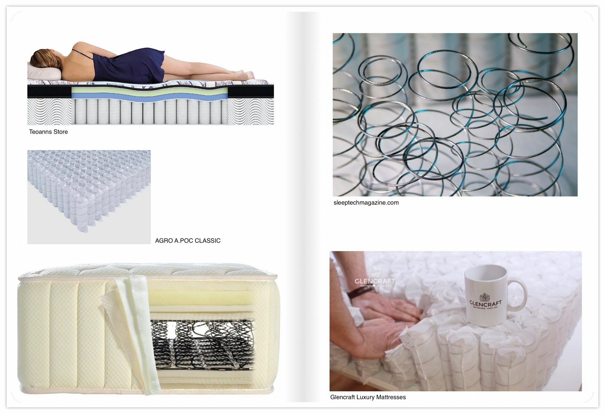 金屬彈簧床墊根據又可以分成「傳統聯結式彈簧」(Open Coils) 和「獨立筒彈簧」(Pocketed Spring Coils) 兩種。
