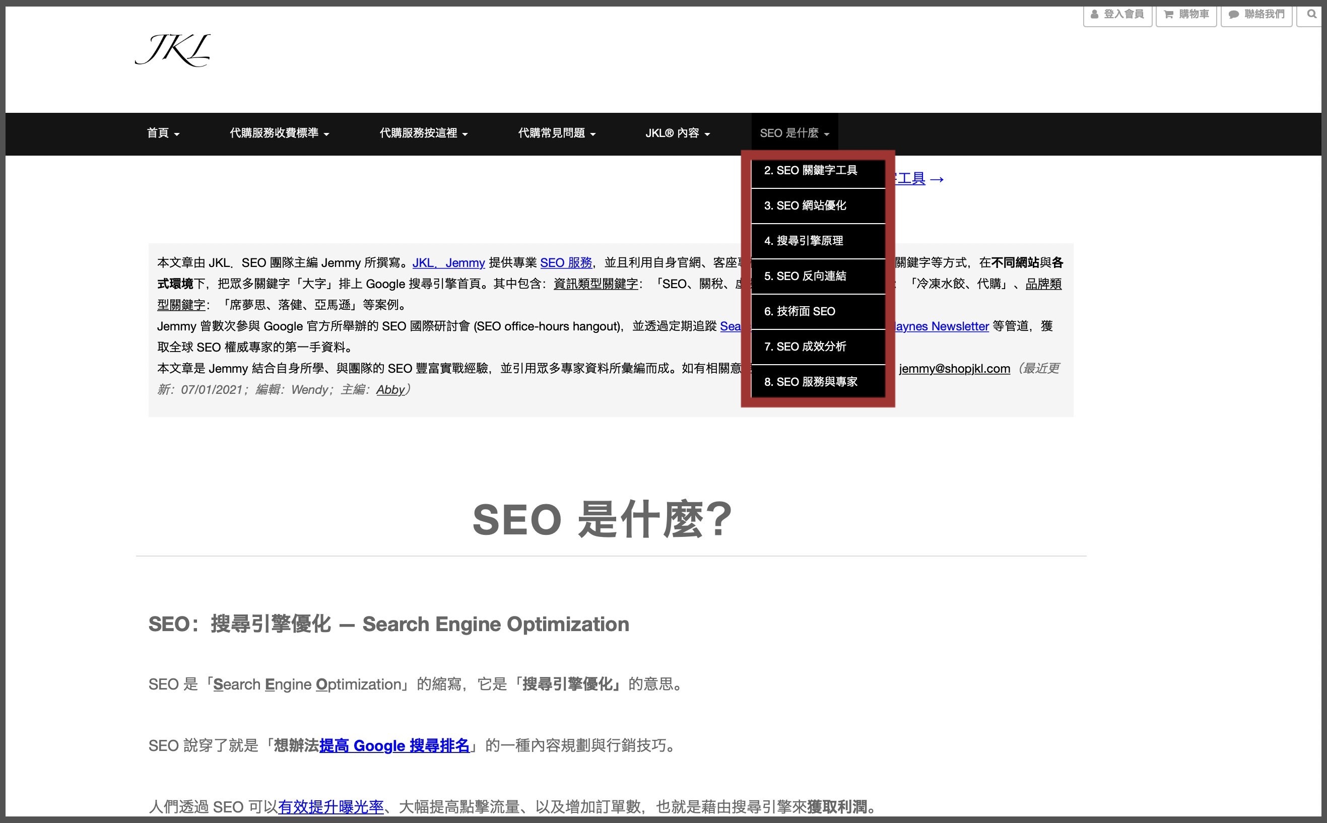 JKL 有提供 SEO 教學文章及 SEO 服務,另外亦有代購服務,具有豐富的實務經驗。