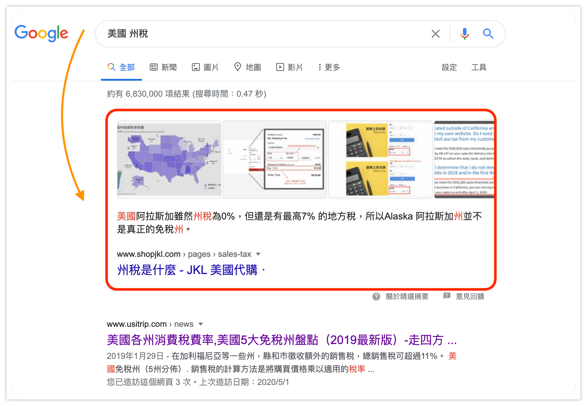 例如,當你想知道美國各州州稅的相關資訊,你可能會搜尋「美國 州稅」: