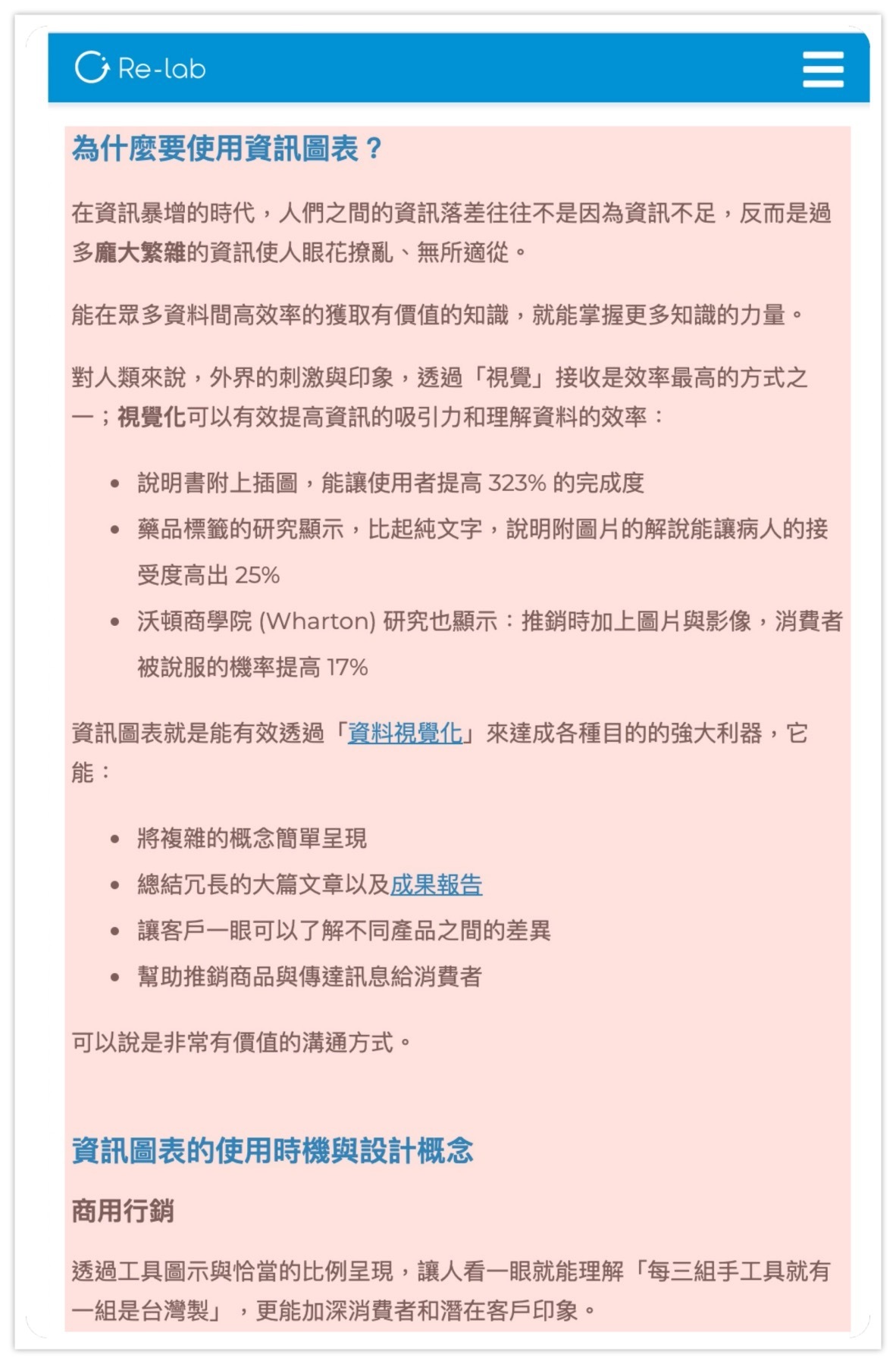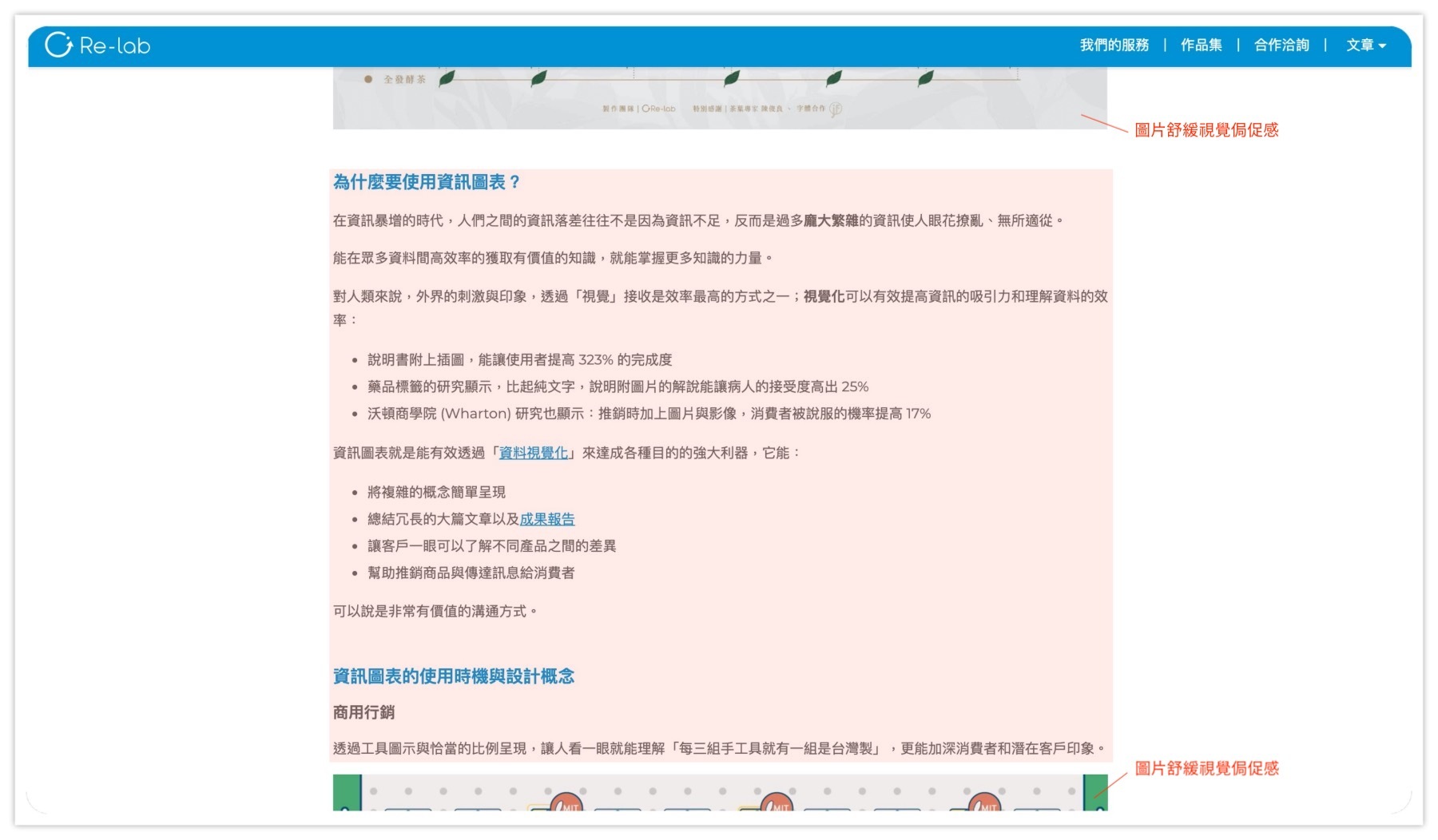 回想你平常使用搜尋引擎查資料的經驗,當今天有兩個從標題看來內容差不多的文章,你會選擇先看密密麻麻都是文字的、還是附有多張精美圖表整理重點的?