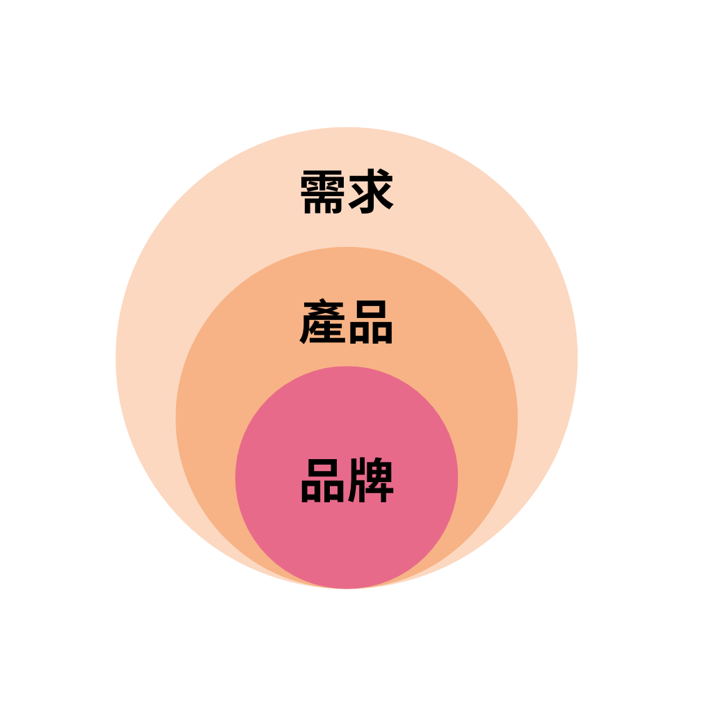 此類關鍵字又稱為「延伸型關鍵字」,以需求(蛋殼)包覆住中心的蛋黃(品牌)與蛋白(產品)。