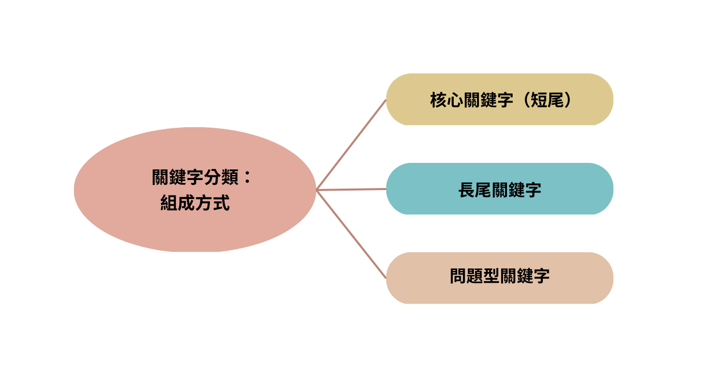 這個分類方式,主要依據的是關鍵字的組成,主要可分為以下三類: