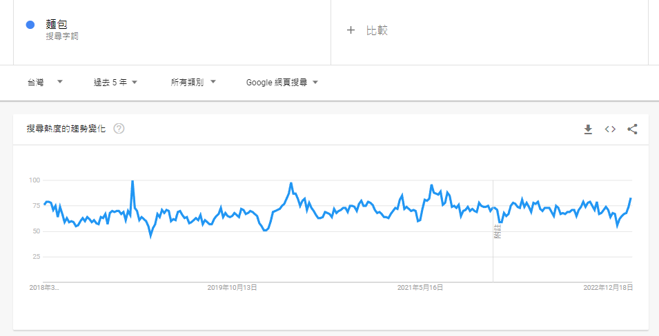 圖:長青型關鍵字-「麵包」的趨勢變化 / Google Trends 搜尋趨勢結果