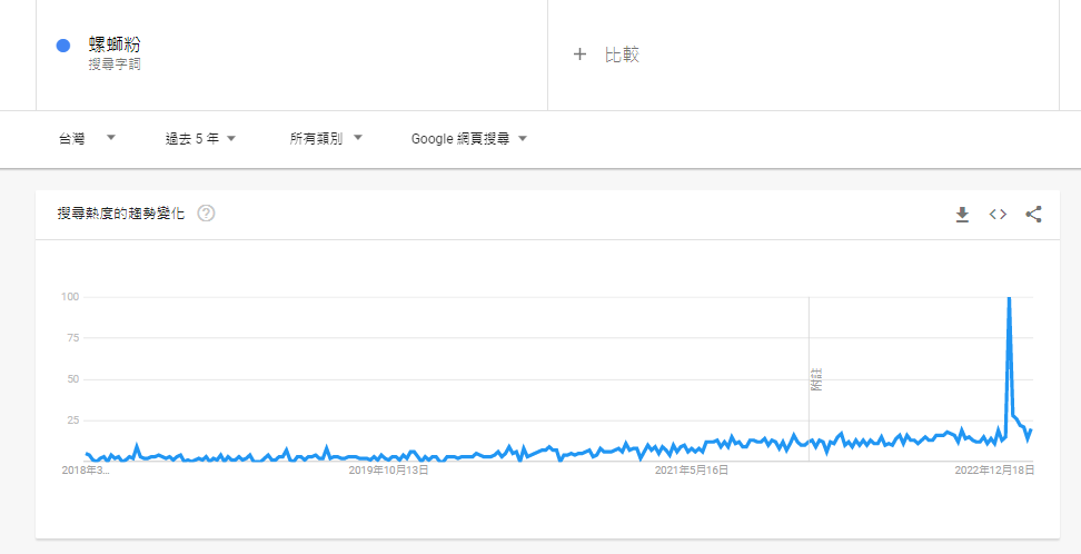 圖:短期熱門型關鍵字-「螺螄粉」的趨勢變化 / Google Trends 搜尋趨勢結果