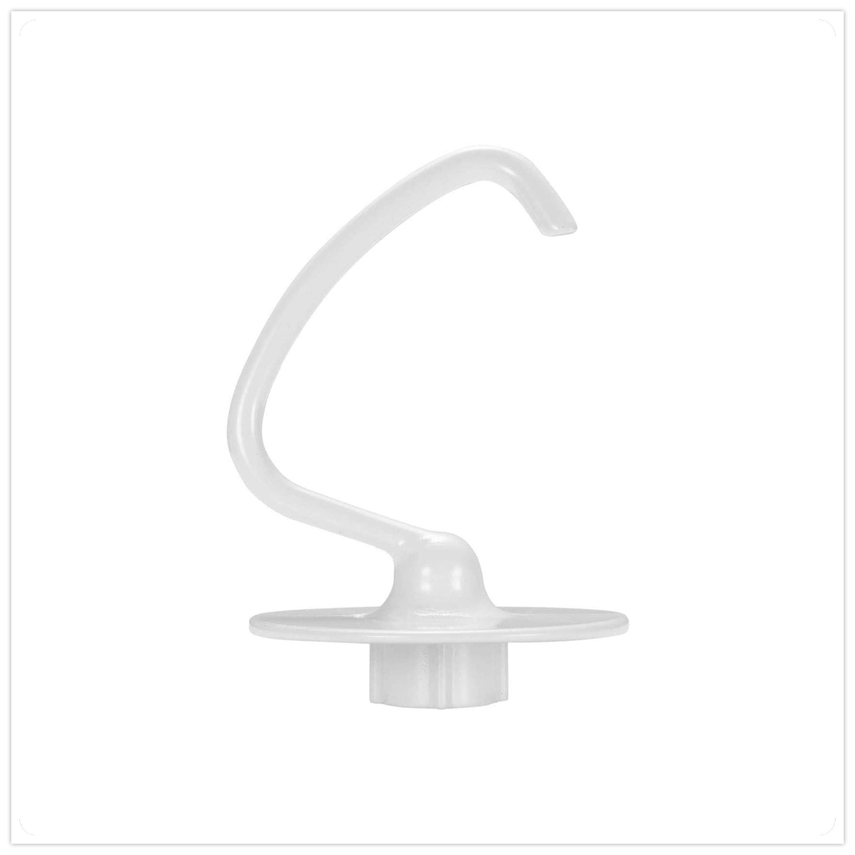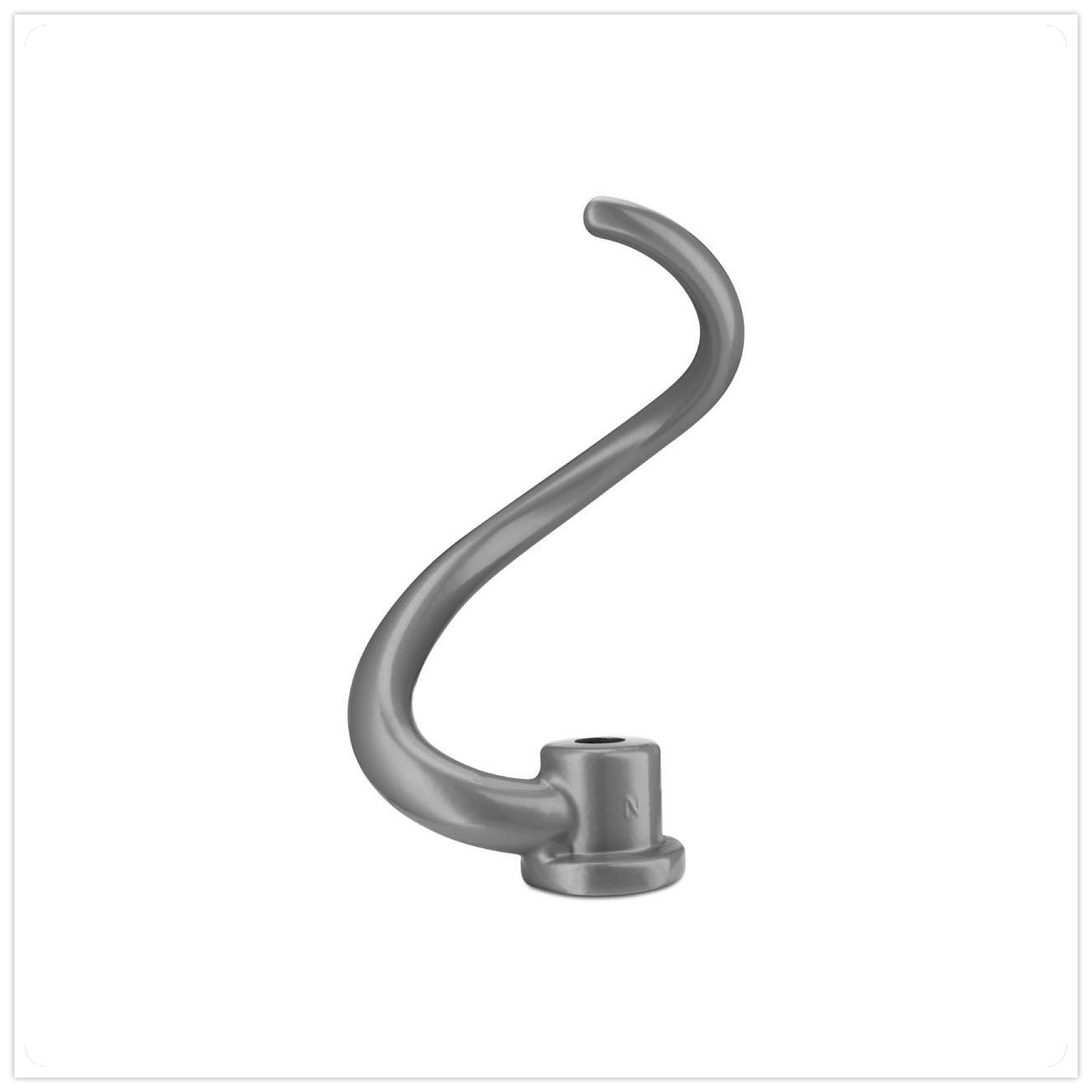 外型有分為 C 字型麵糰鉤以及螺旋型麵糰鉤,C 字型麵糰鉤是 Kitchenaid 基本樣式的麵糰鉤,主要功能是將麵糰從攪拌盆的「側邊」勾離,適用於所有抬頭式型號及部分升降式型號。