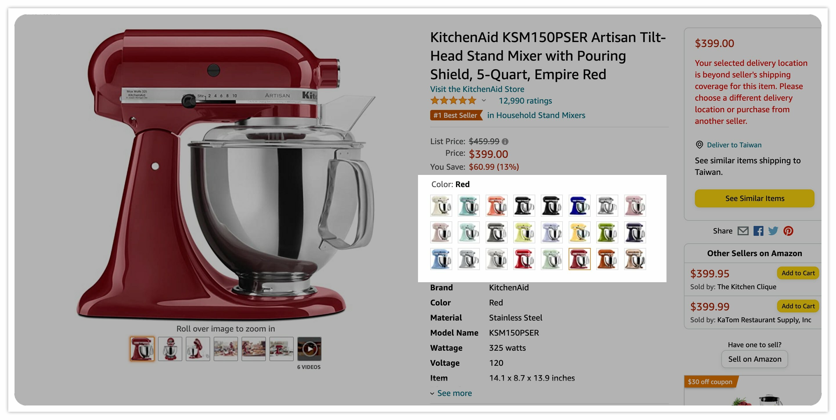 由上表可以發現,同樣是5QT/4.7L的Artisan系列,台灣代理商賣的價格就比從美國亞馬遜購買貴上將近一萬台幣;