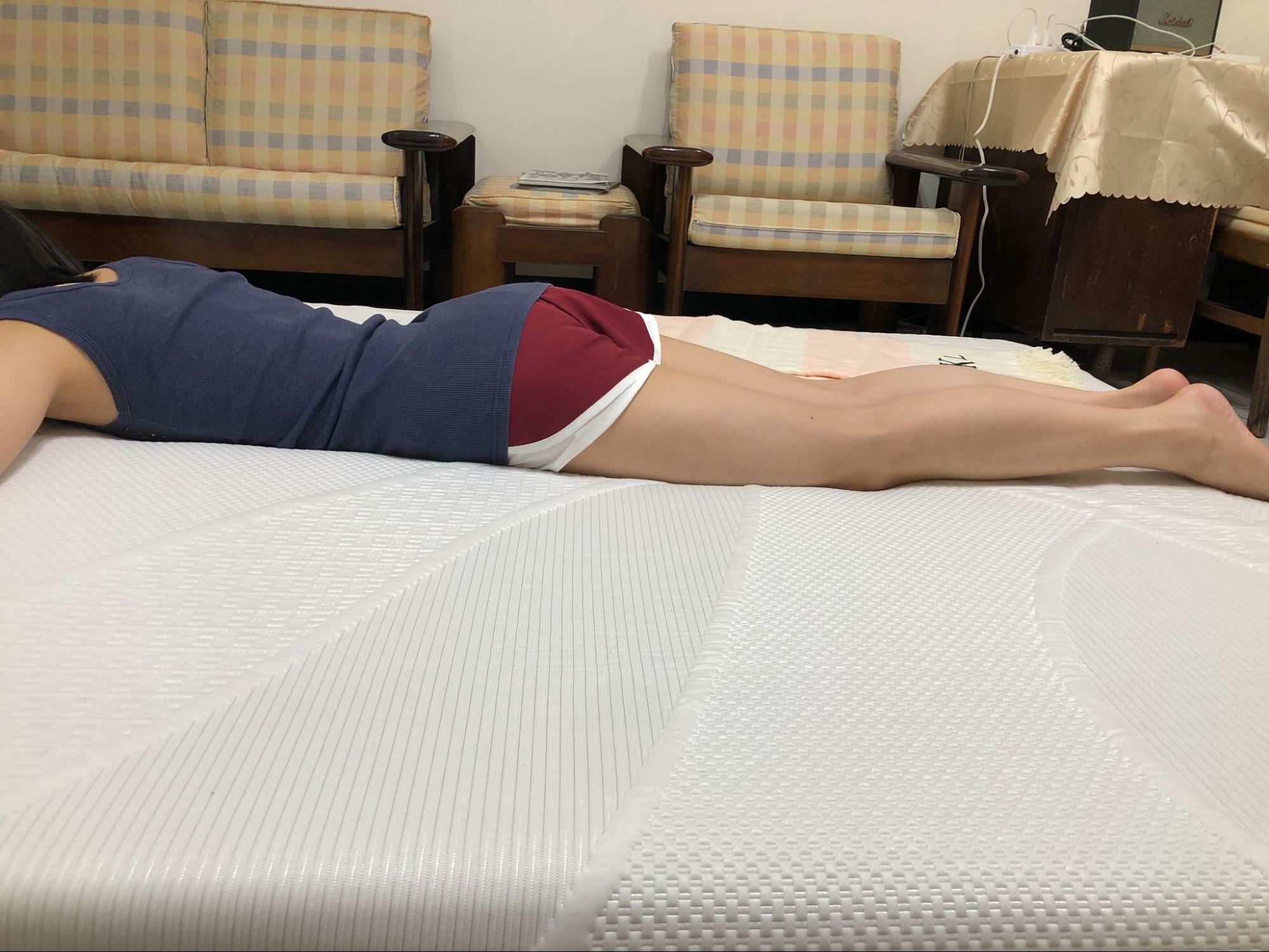 身體如果沒有覺得骨突位置,如:肩膀、尾椎、膝蓋等位置被壓迫,表示床墊減壓效果佳。