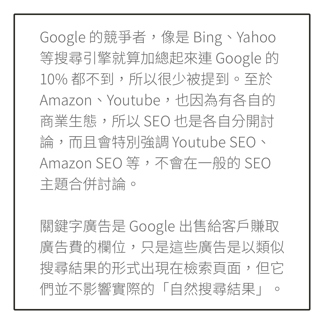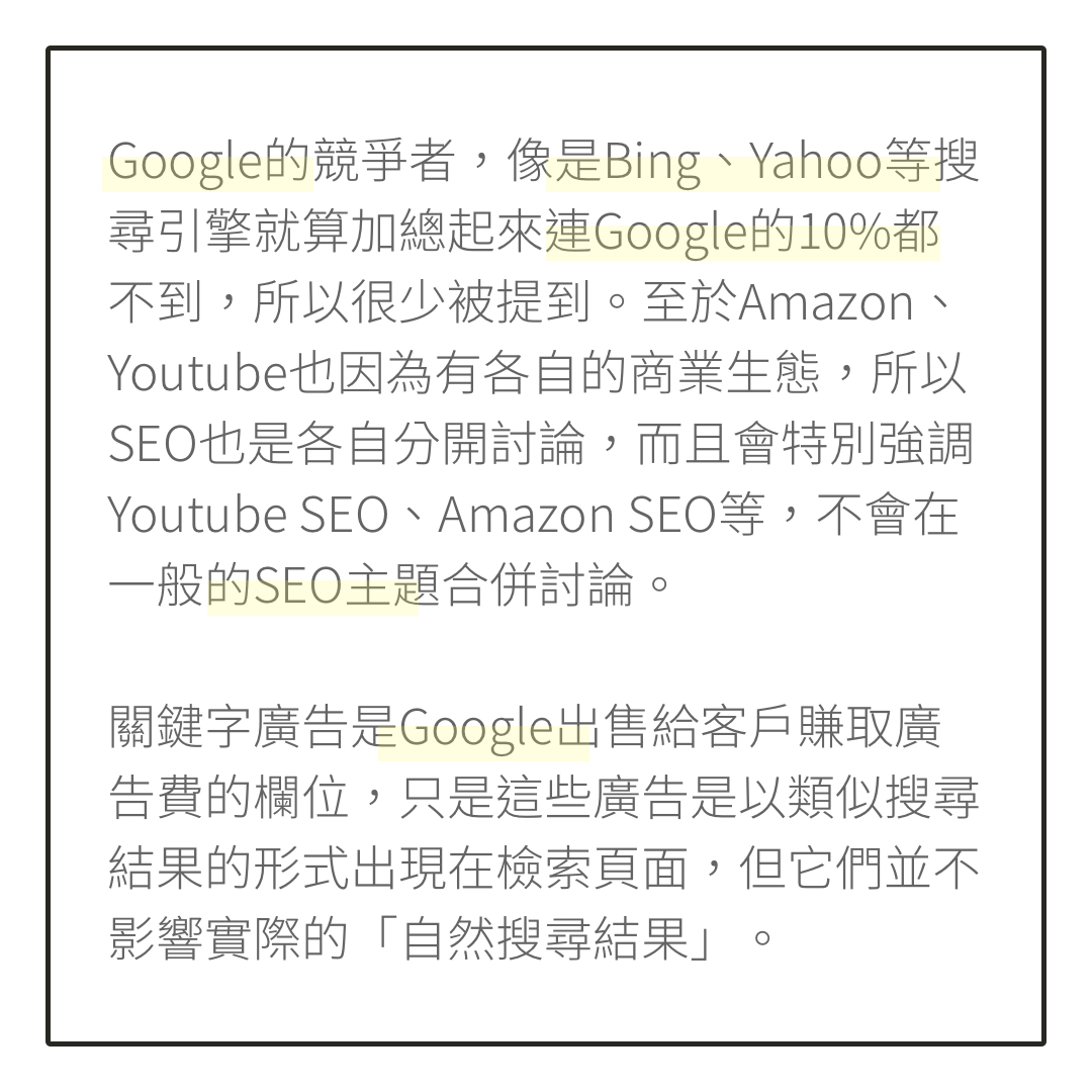 在數位文字中間加上空格可以增加閱讀流暢感,也讓使用行動裝置的讀者不會感到侷促、讀起來文字不會擠在一起,所以它也是搜尋引擎優化值得重視的細節。
