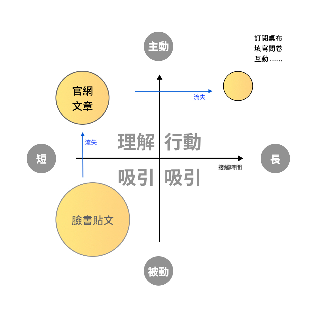 相比起來,透過社群、廣告而來的流量,他們與品牌接觸時間很短,會來造訪也是被動收到品牌推出的資訊,那他們就比較不容易採取行動。需要更多的時間與精力,才能將他們從被吸引、到理解、再導向成交。