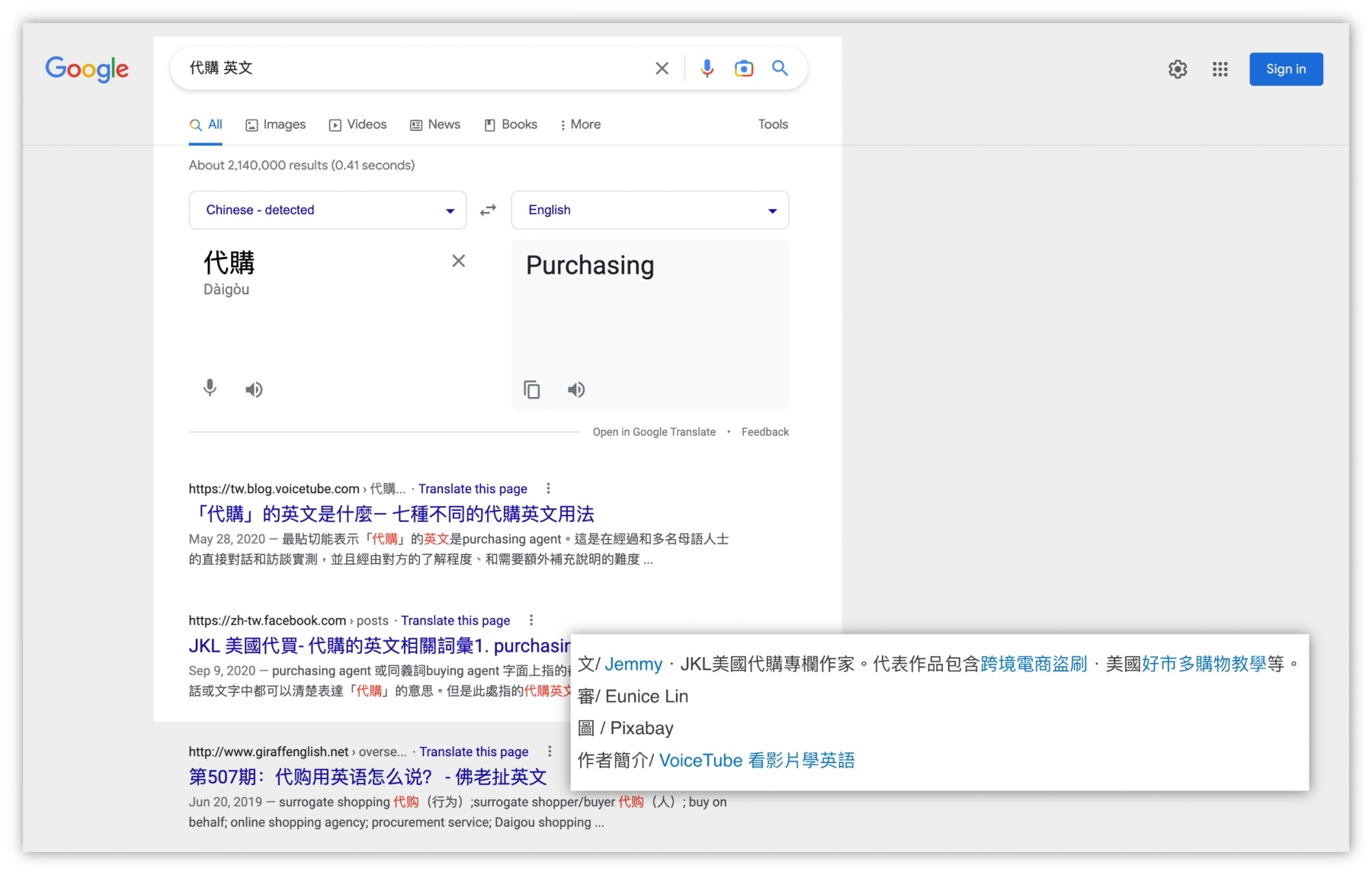我們會知道這個資訊,也是因為自己也有經營過這個關鍵字,僅次於 Google 翻譯下方,佔據兩個排名,所以對這類型字詞的搜尋意圖有一定的了解。