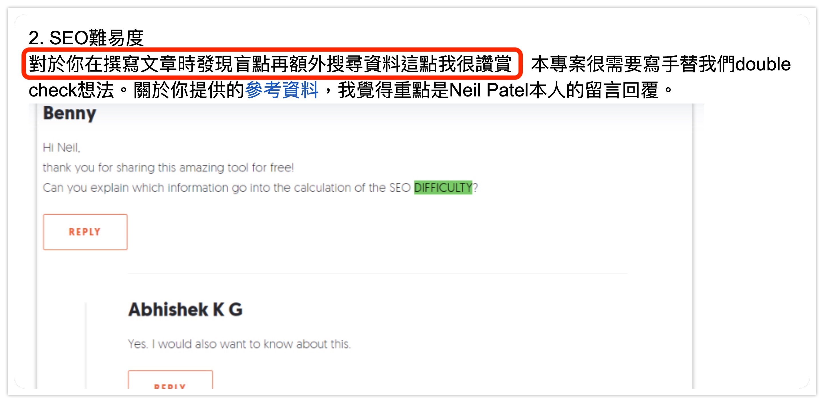 由於工作內容是由業主派案,業主或其他編輯本身對於文章需求或主題較了解、掌握的資訊較多,接案者需要有很明確的撰寫方向和指示才能彌補雙方的資訊落差,也才較能掌握到案件的需求。