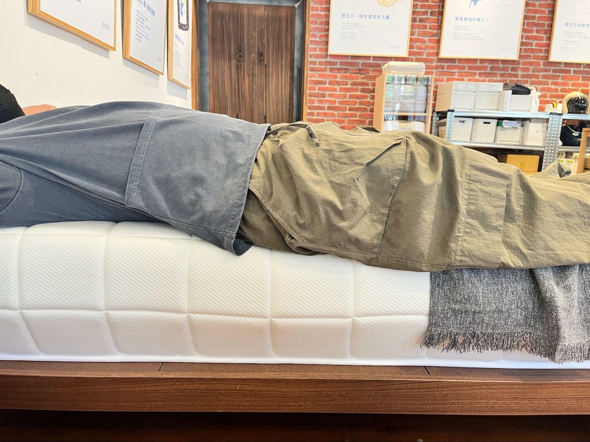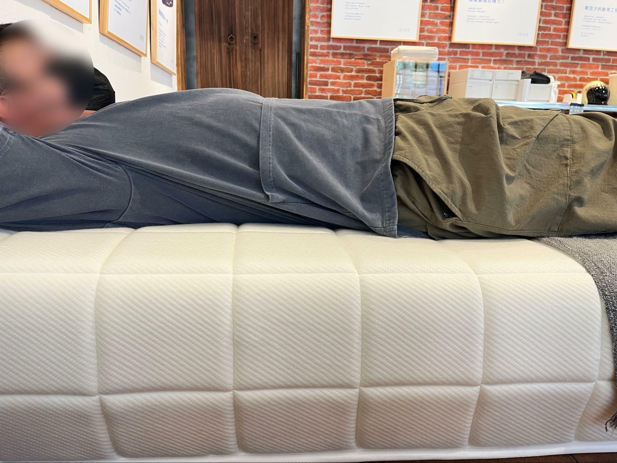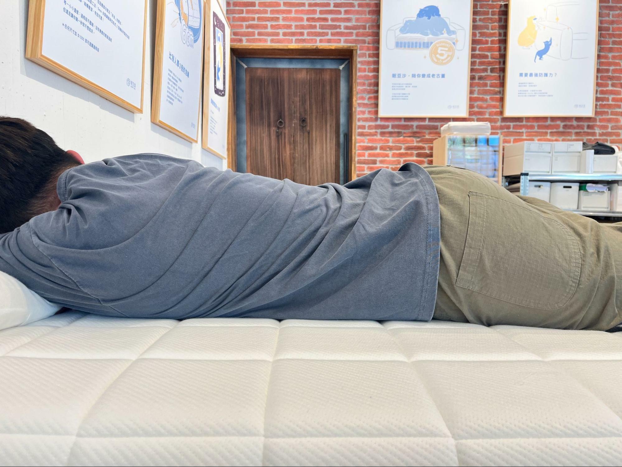 可以在試躺床墊時以相機側拍躺姿,觀察脊椎是否維持良好的弧度,或是同姿勢試躺 10 分鐘以上,感受一下身體肌肉是否能夠完全放鬆的躺著。