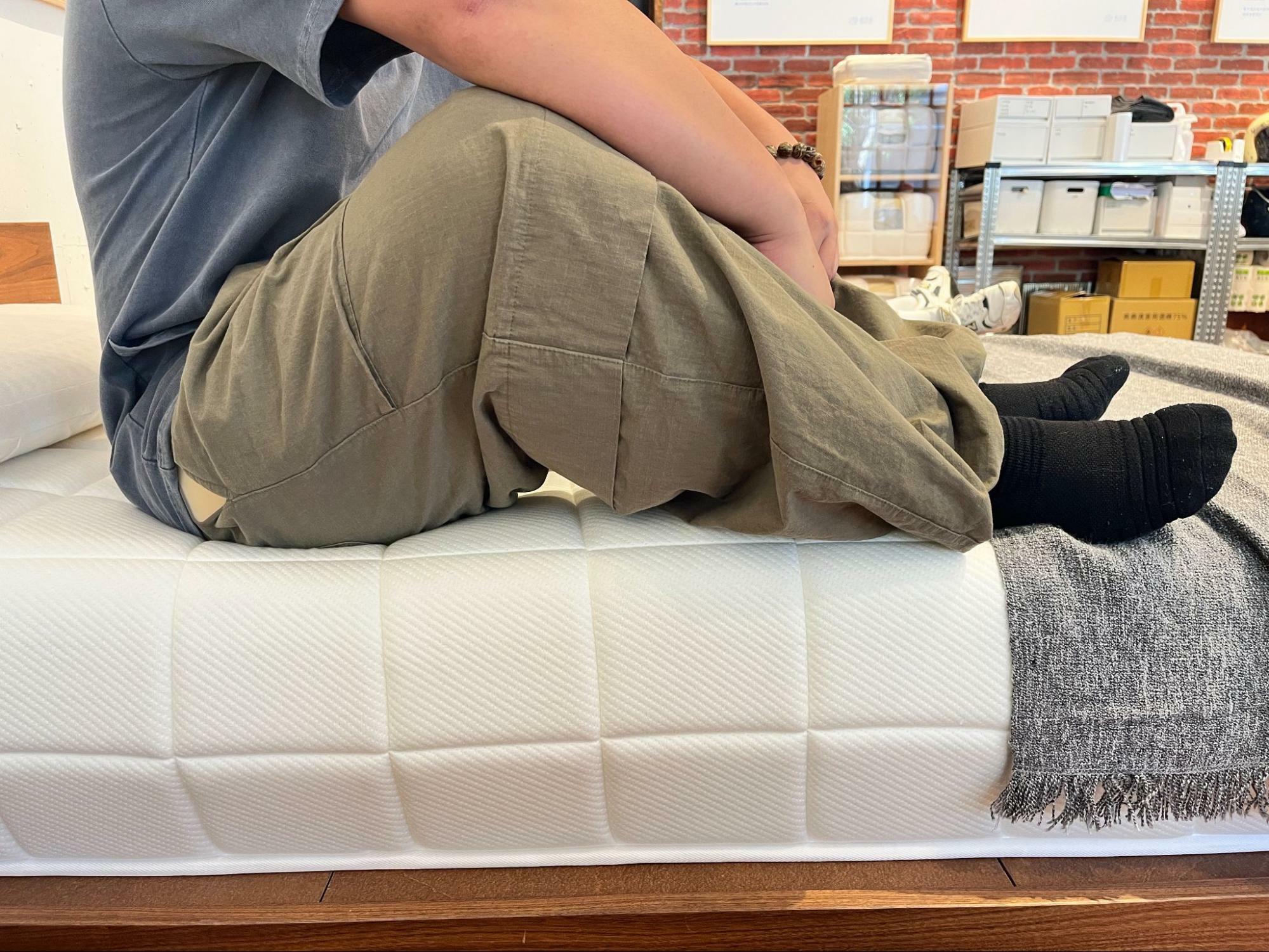 甚至是我用坐的方式,全身力量幾乎落在屁股的地方,即便坐在床墊的邊緣,也不會覺得下陷。有邊框版本我覺得支撐性,有達 4 分。