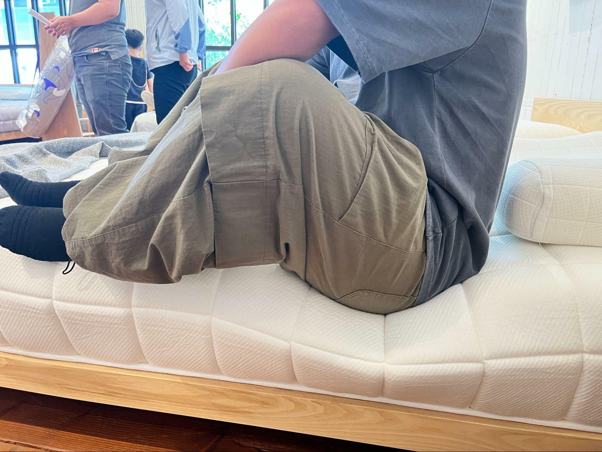 但反觀無邊框的版本。同樣是坐在床墊的邊緣,不僅是我本身感受得到床邊下陷,甚至肉眼也可以明顯看得出塌陷。
