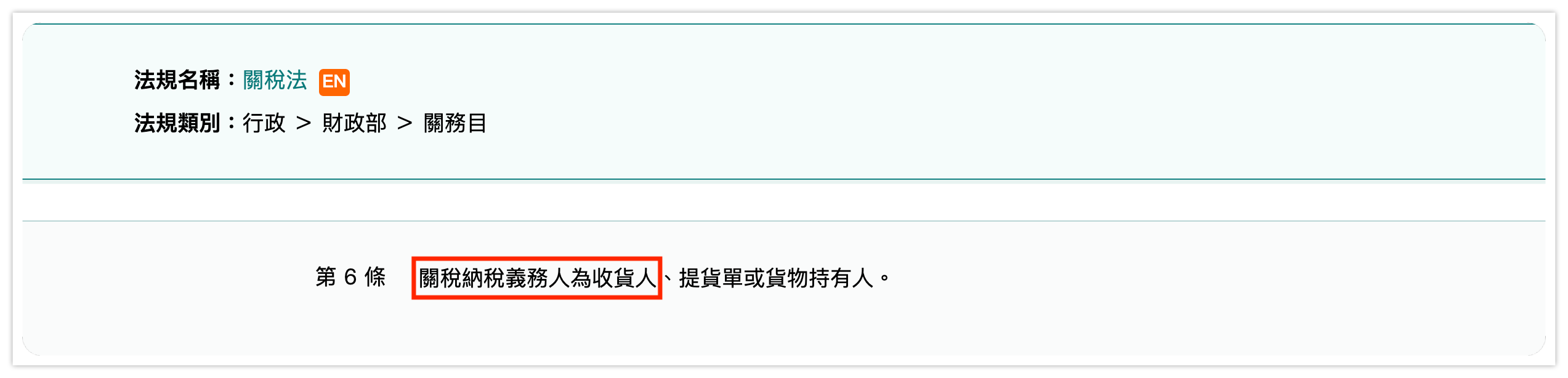 根據關稅法,關稅的納稅義務人是「收貨人」,也就是網購、海外購物的包裹收件人。
