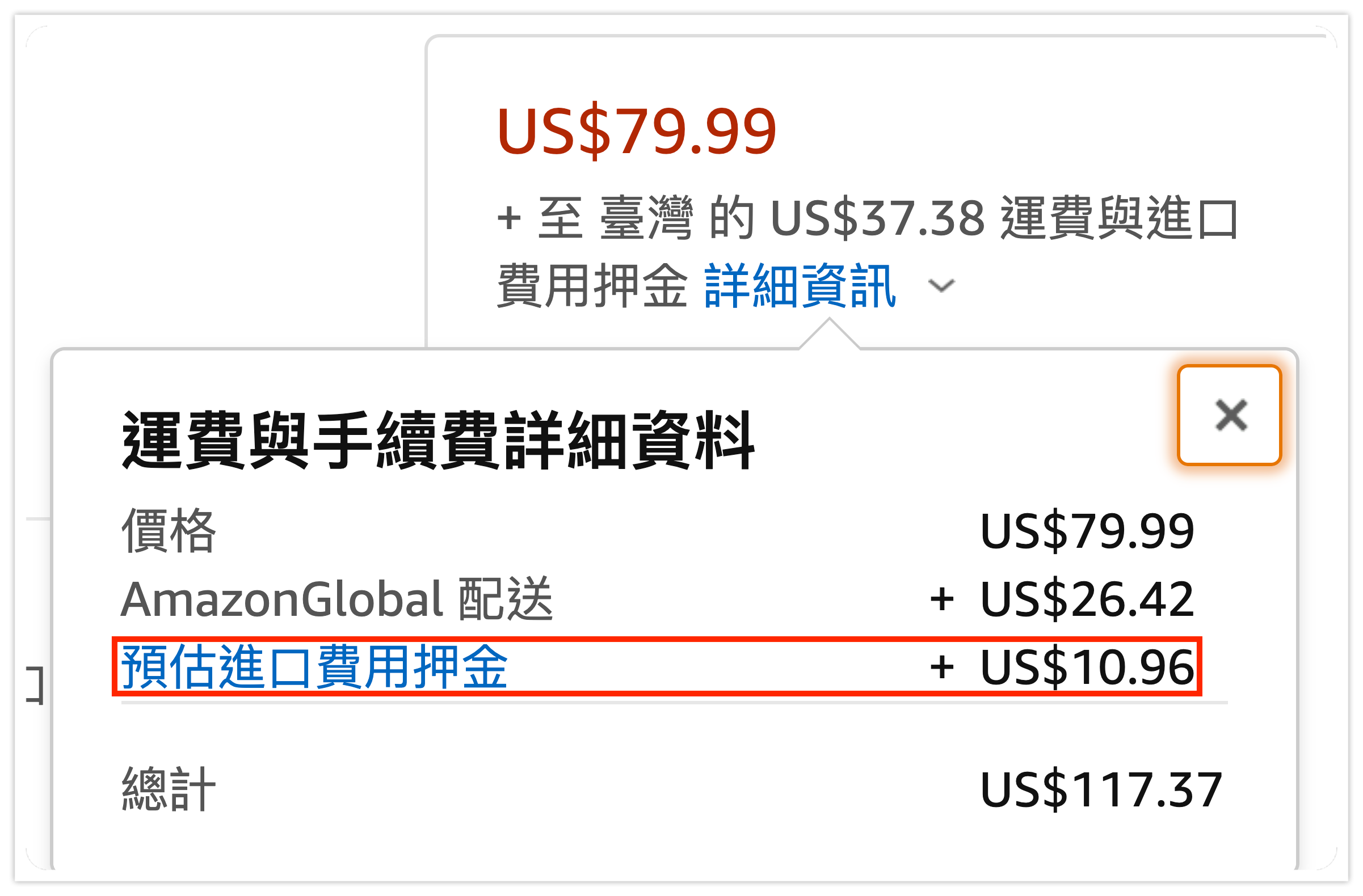 *起岸價格 = 包裹金額(離岸價格)+ 代買費(佣金)+ 運費