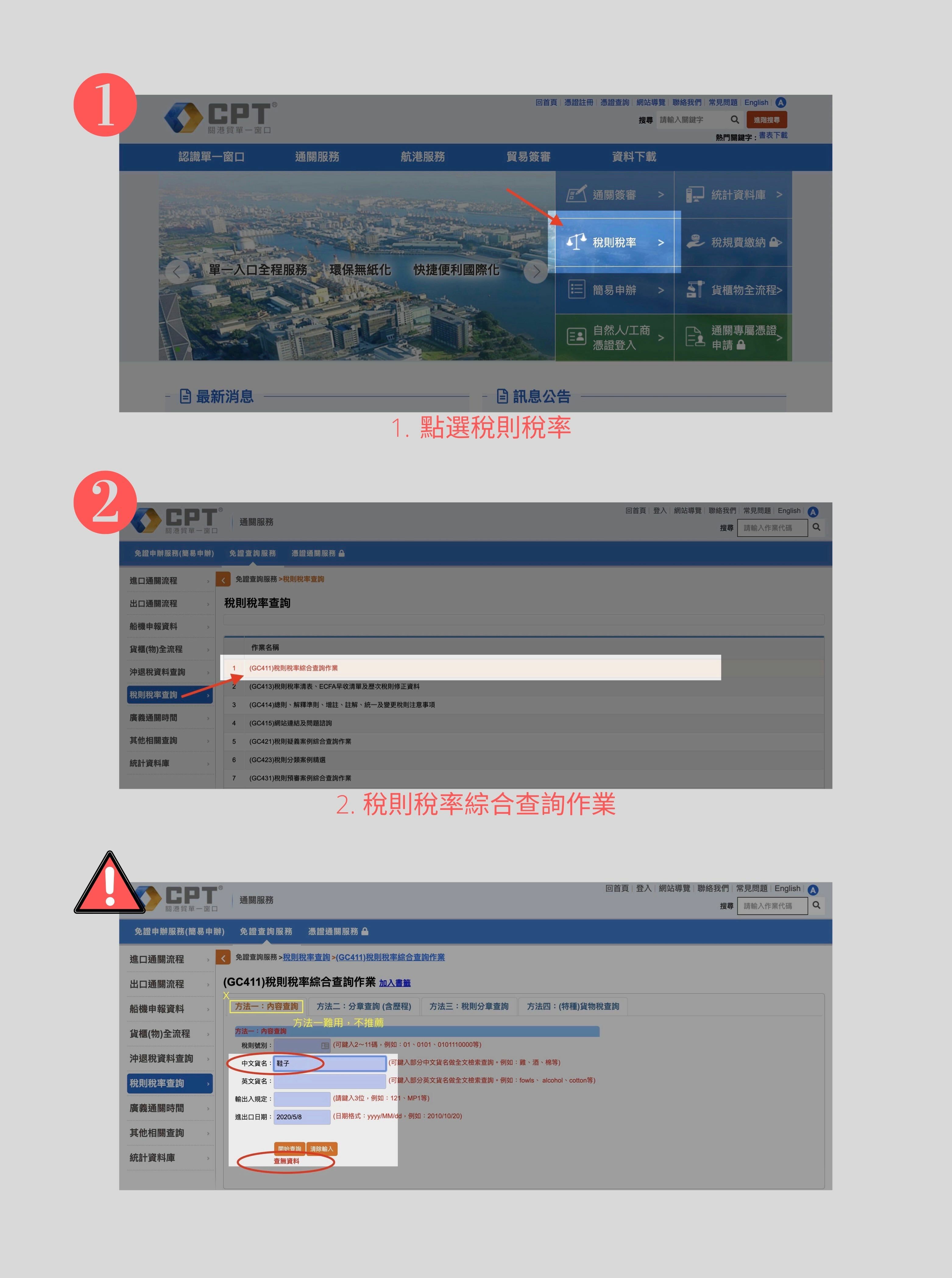 只是,用來分類的「稅則」是用一長串的數字編號(稅則號碼)作為分類,所以關港貿網站的操作查詢流程也是要稍加熟悉,才容易順暢的查到更明確的稅則和稅率。