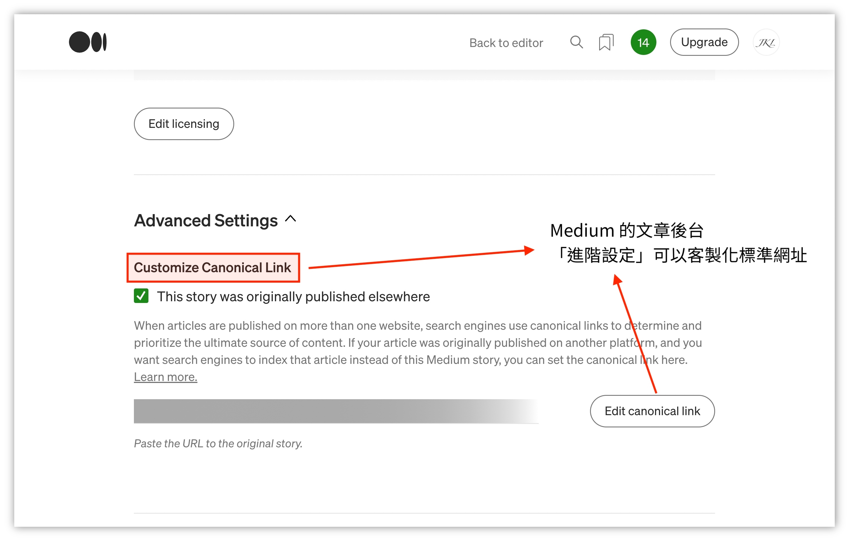 知名的內容發佈平台 Medium 也有客製化標準網址的設計