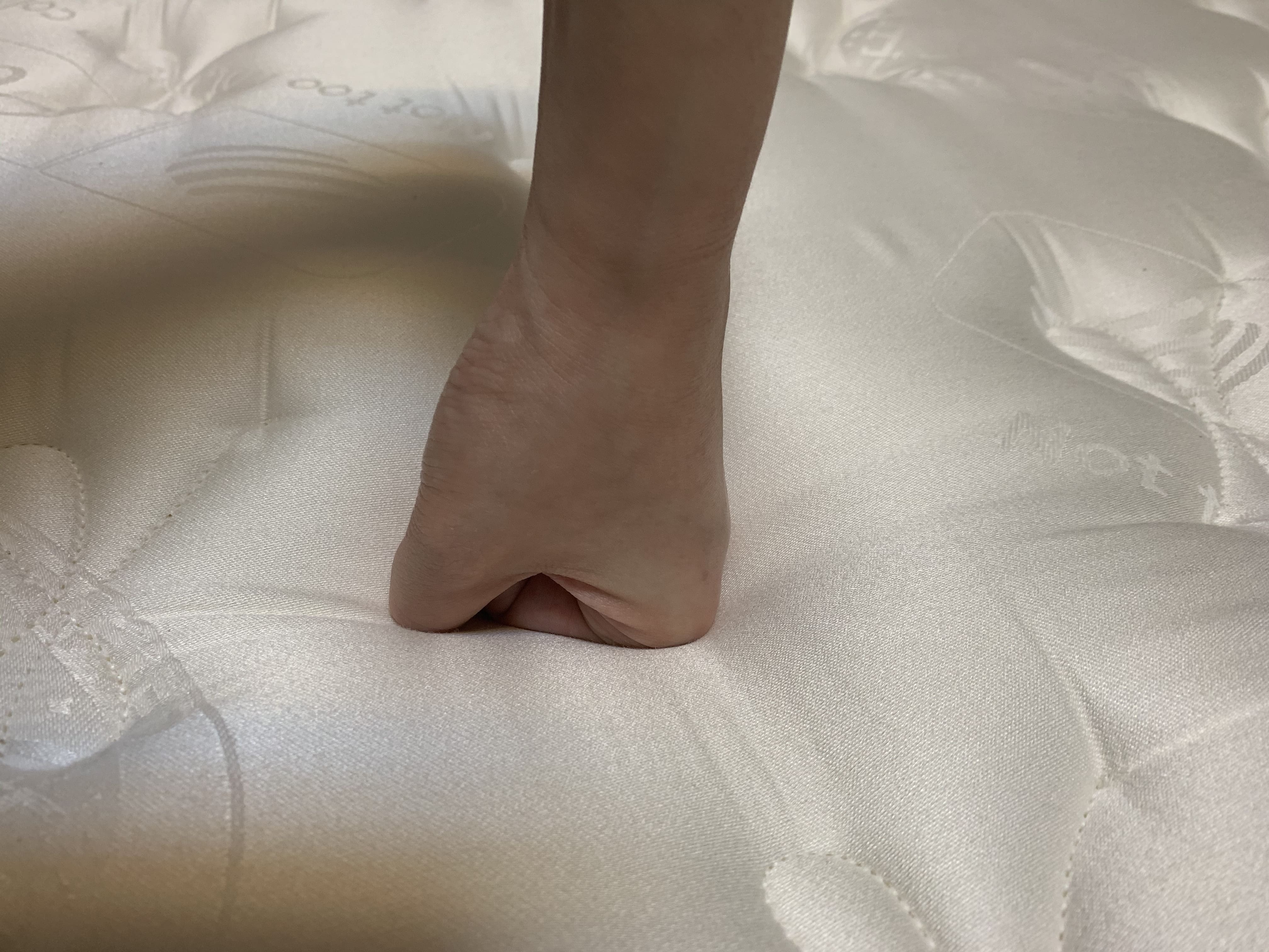 不過, 想窩床墊的床沿支撐比較穩固,當用拳頭往下壓時,下陷程度小於眠豆腐(加側框版),