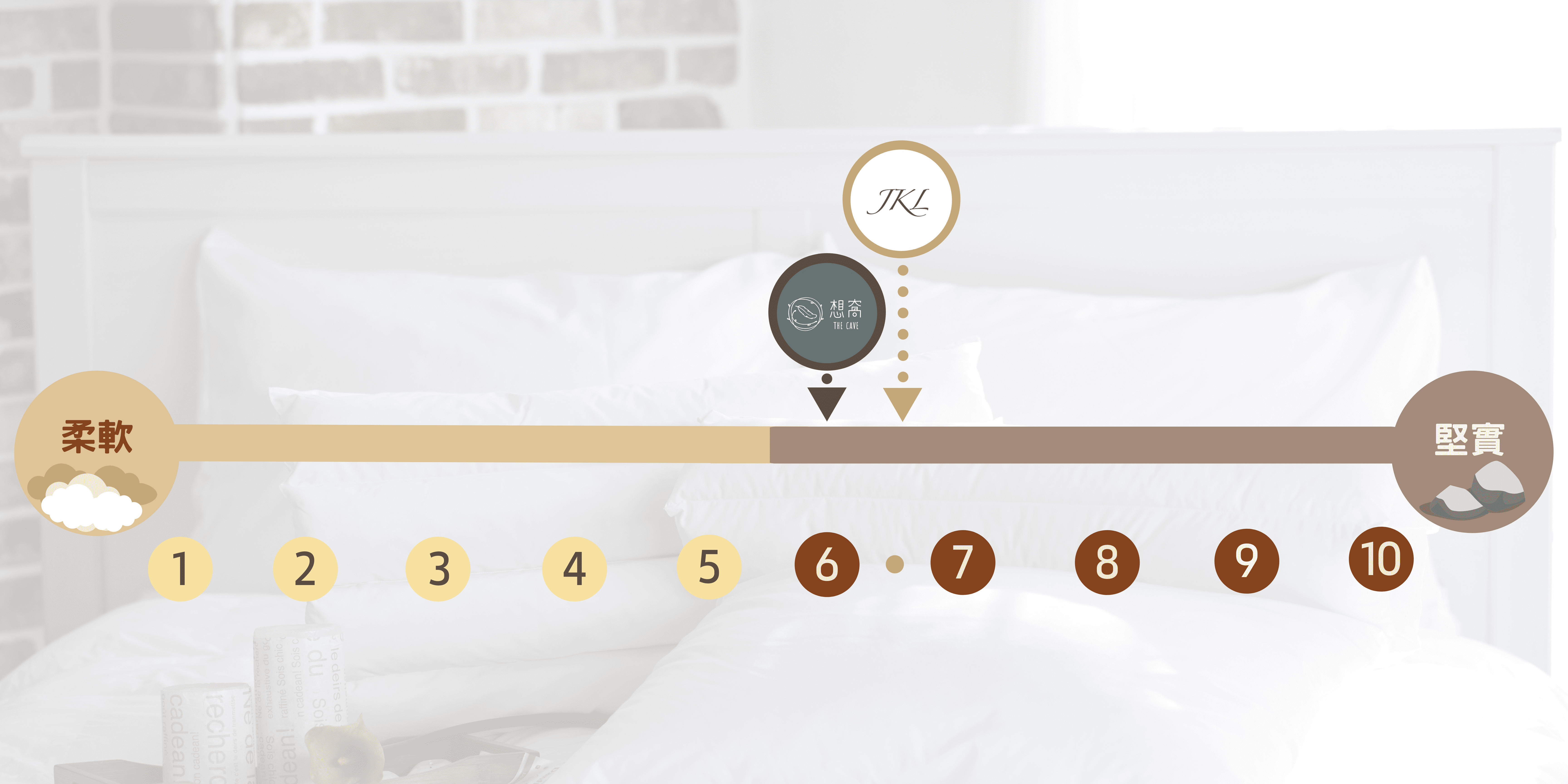 若由軟到硬為 1–10,想窩官方提供的床墊軟硬度數值為 6,屬於中間偏硬,是大多數台灣人較習慣的軟硬度。