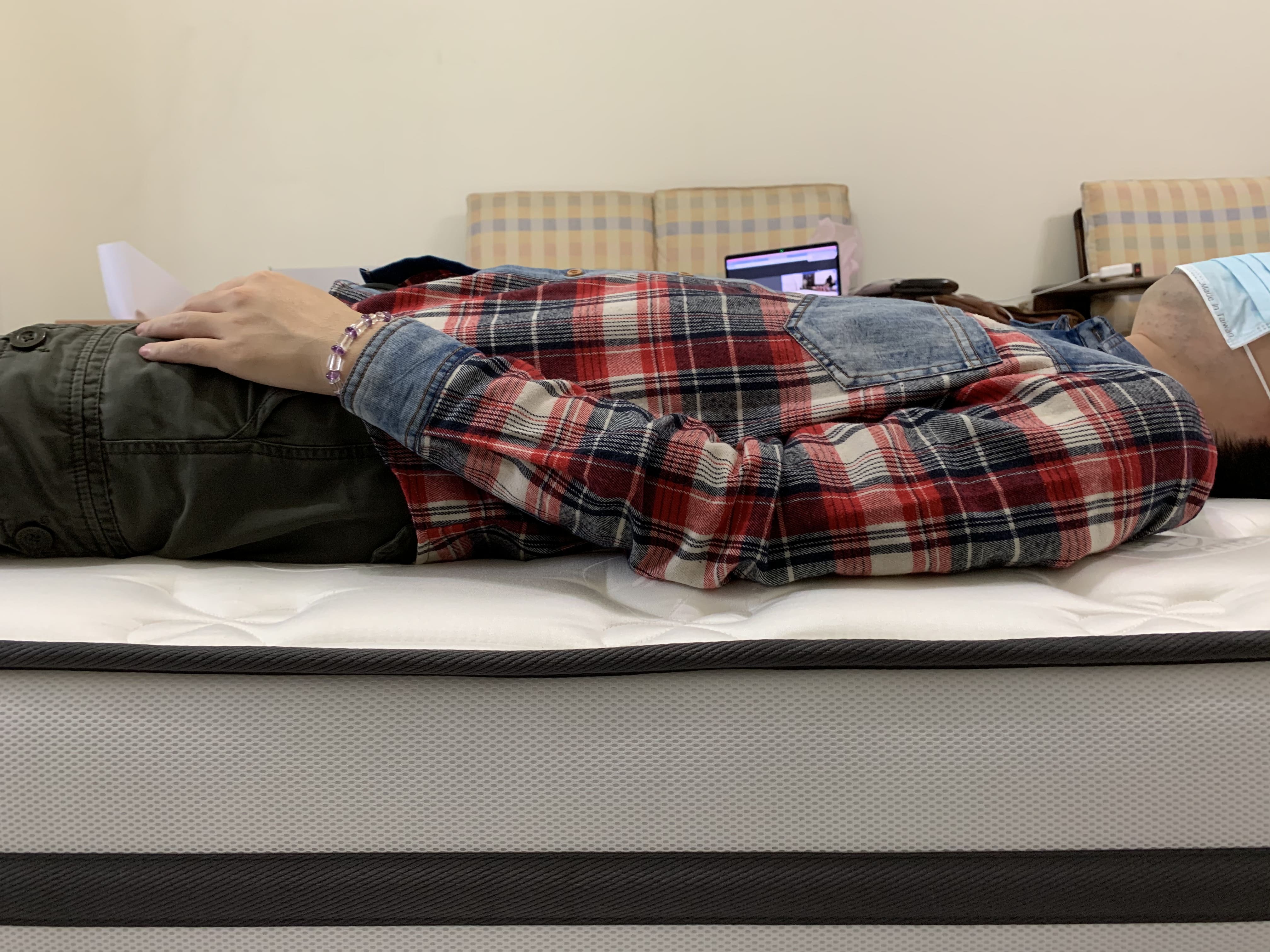 會有種微微陷在床墊裡的感覺,但脊椎仍有受到良好的支撐,可充分放鬆骨骼肌肉。