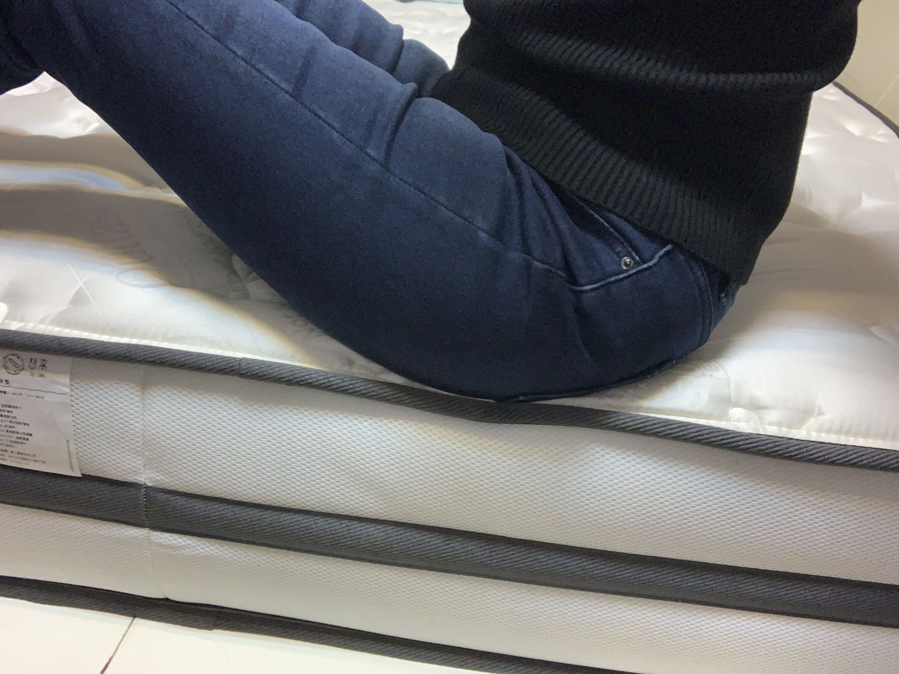 兩種床墊都有很穩固的床沿支撐力,無論是躺在最側邊,或是直接坐在床的邊緣,都不會有陷落感。