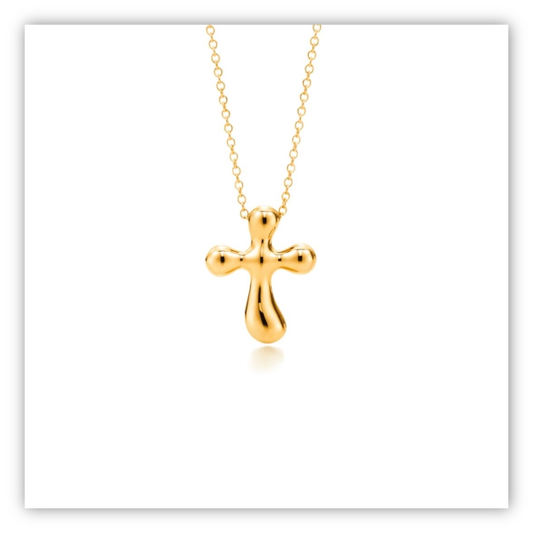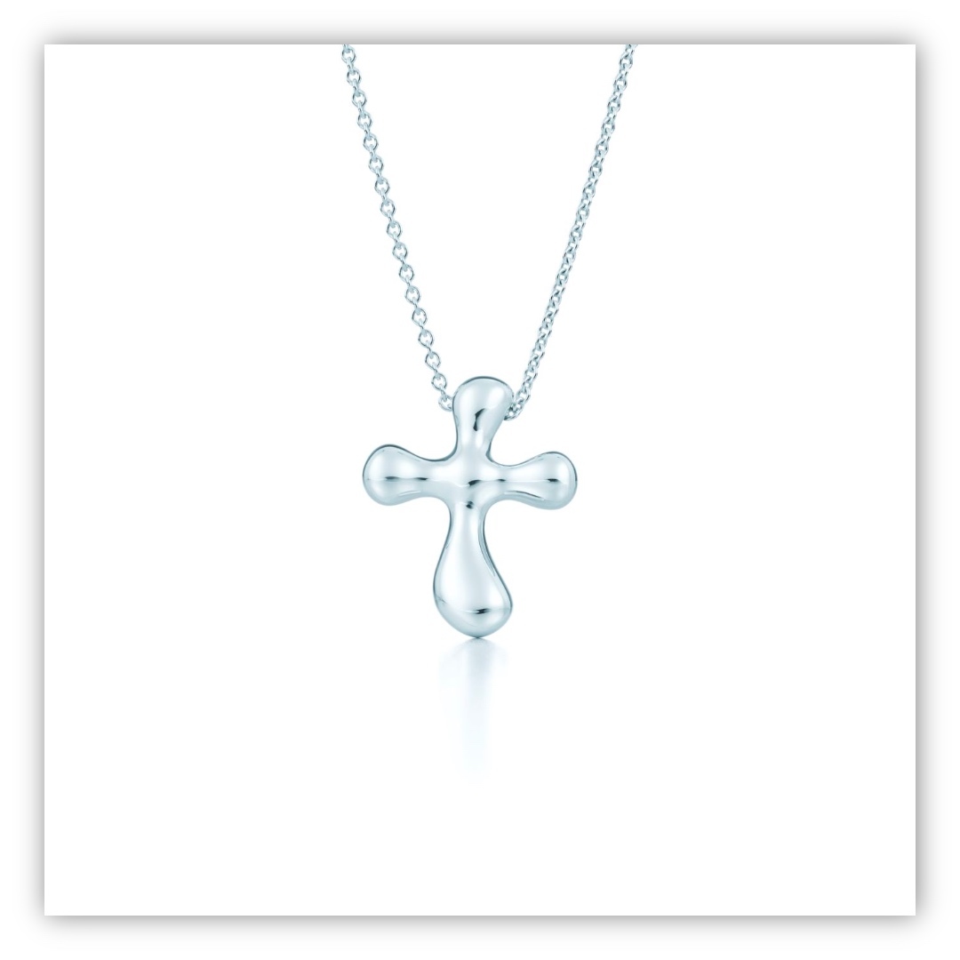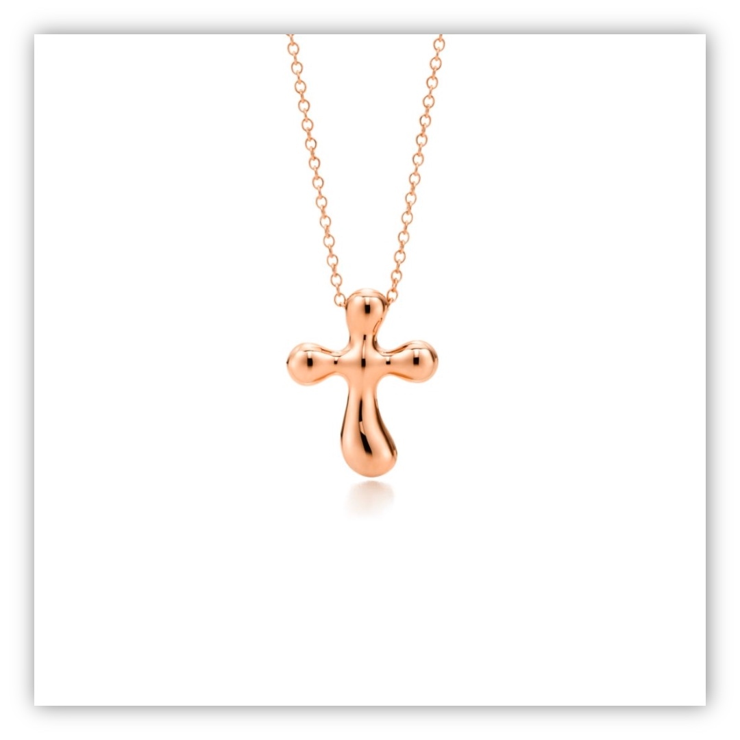 極簡造型的十字符號,帶有流線弧度與水滴般的曲線設計,有純銀 (USD$ 775)、黃金 (USD$ 1,900)、玫瑰金 (USD$ 1,900)。