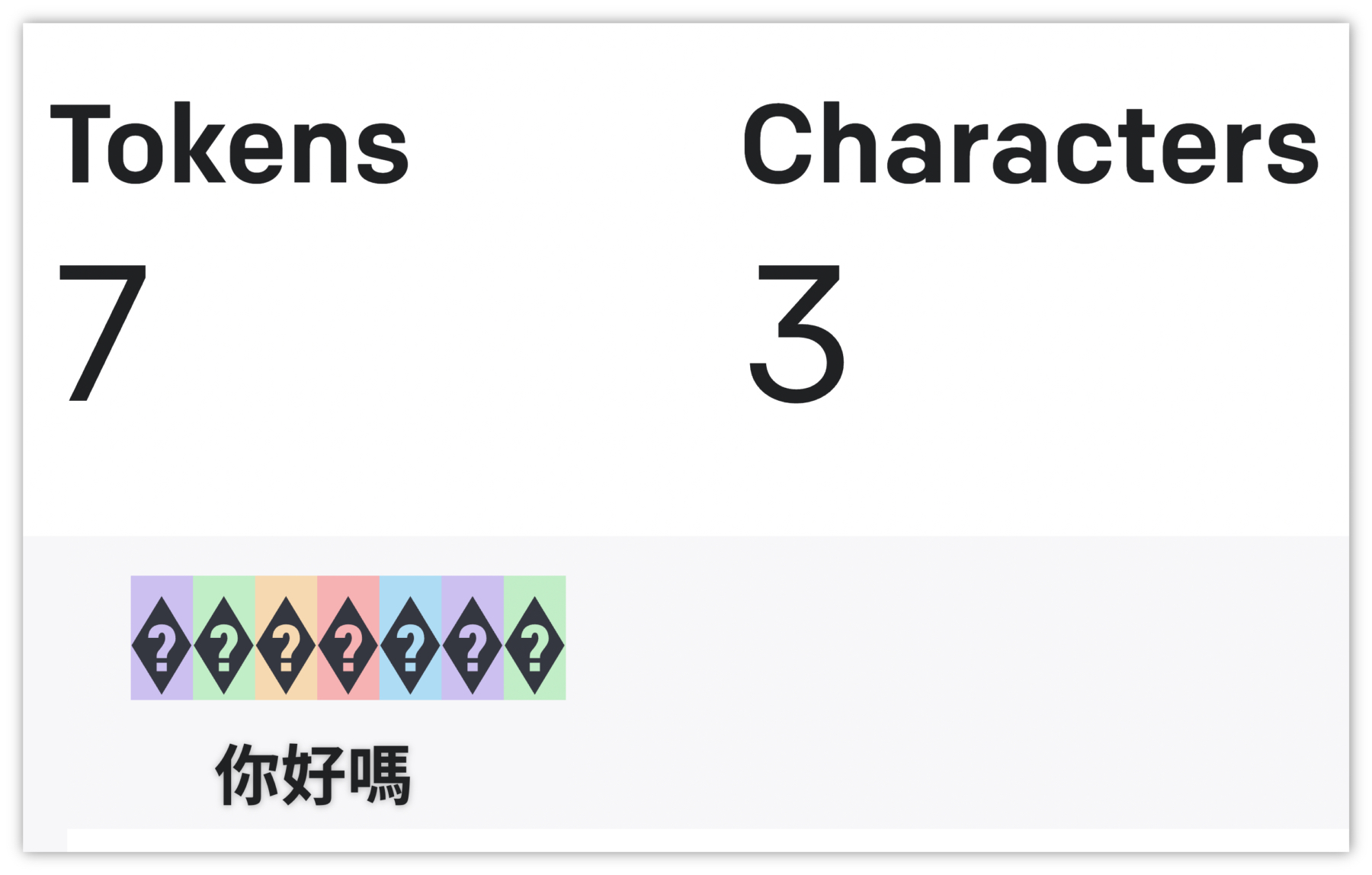比如說「你好嗎」是 3 個中文字,但使用了 7 個 token。